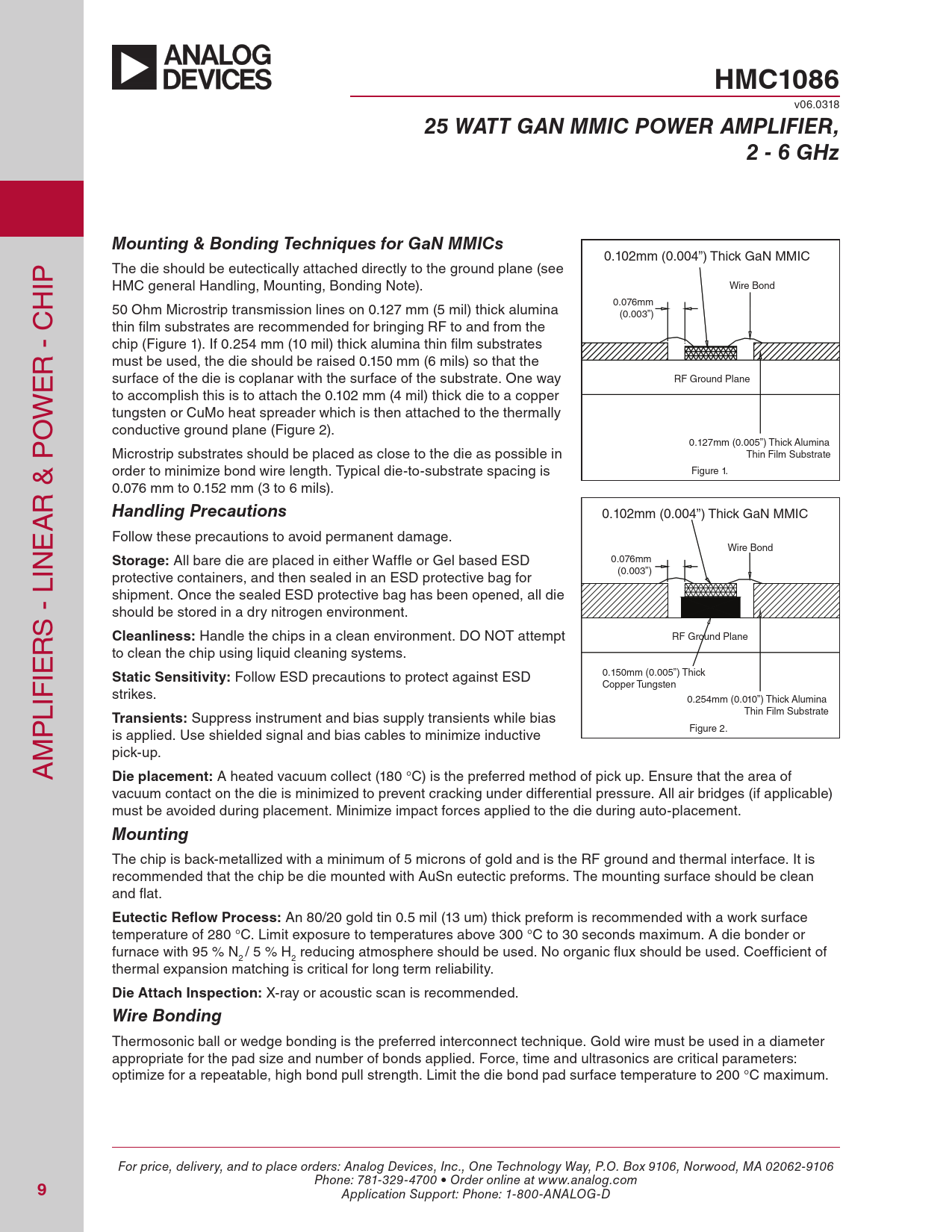 HMC1086. 25 WATT GAN MMIC POWER AMPLIFIER,. 2 - 6 GHz. Mounting & Bonding Techniques for GaN MMICs. Handling Precautions