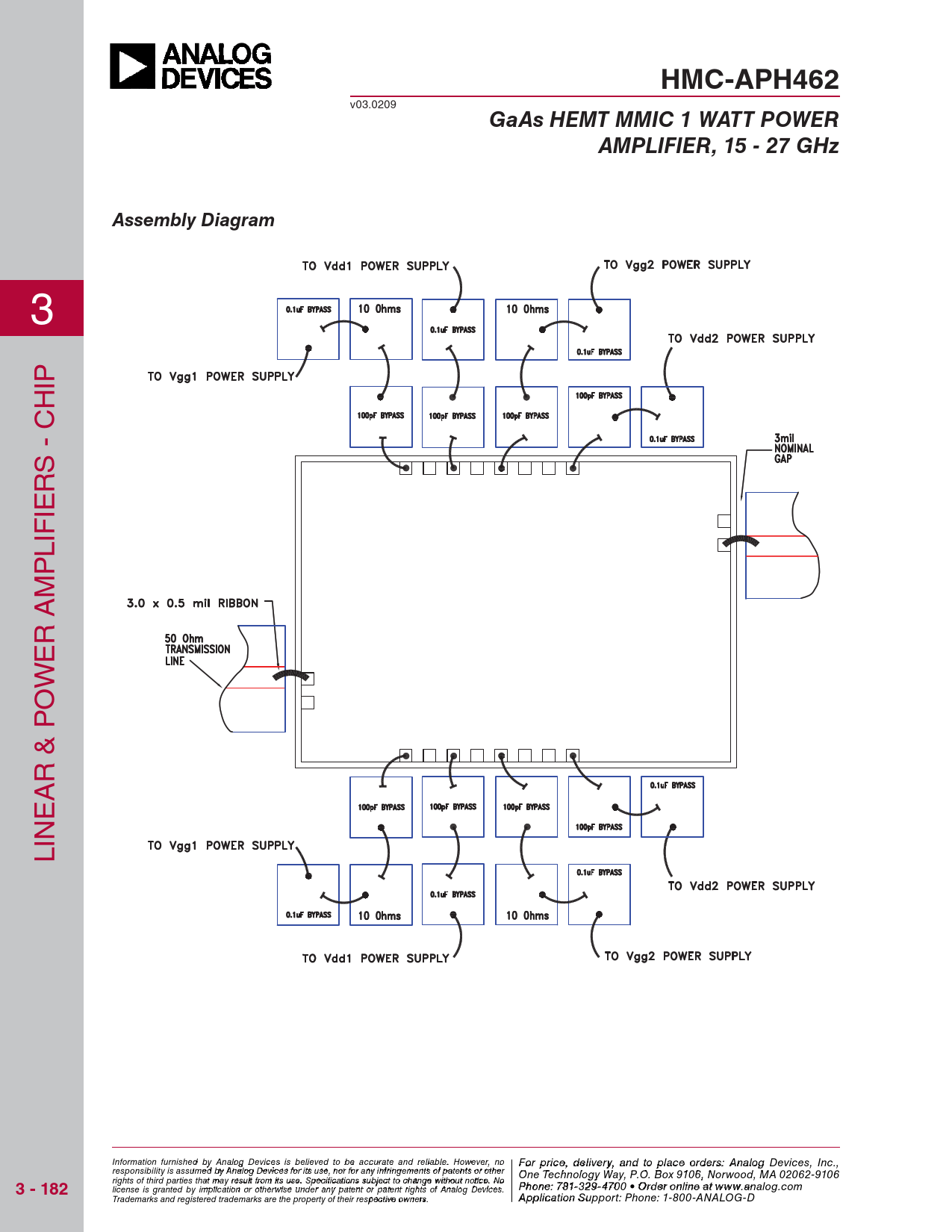 HMC-APH462 GaAs HEMT MMIC 1 WATT POWER AMPLIFIER, 15 - 27 GHz Assembly Diagram 3 - 182