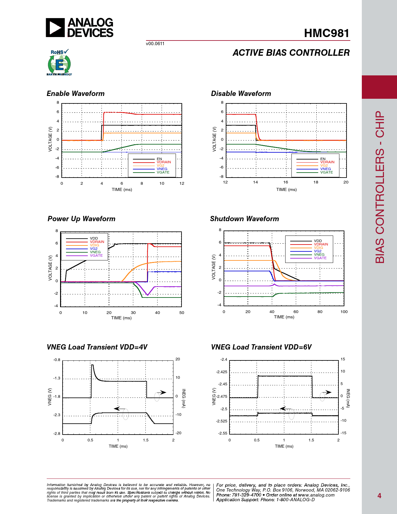 HMC981. ACTIVE BIAS CONTROLLER. Enable Waveform. Disable Waveform. Power Up Waveform. Shutdown Waveform. VNEG Load Transient VDD=4V