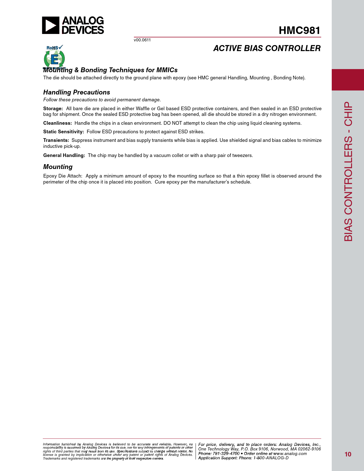 HMC981. ACTIVE BIAS CONTROLLER. Mounting & Bonding Techniques for MMICs. Handling Precautions. Storage:. Cleanliness: