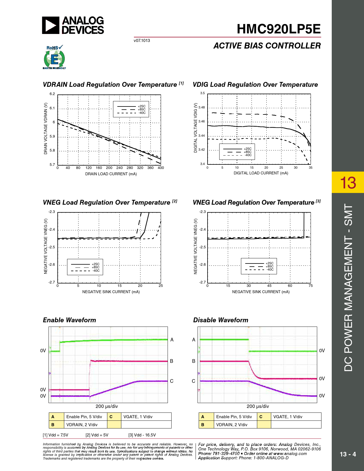 HMC920LP5E. ACTIVE BIAS CONTROLLER. VDRAIN Load Regulation Over Temperature [1]. VDIG Load Regulation Over Temperature