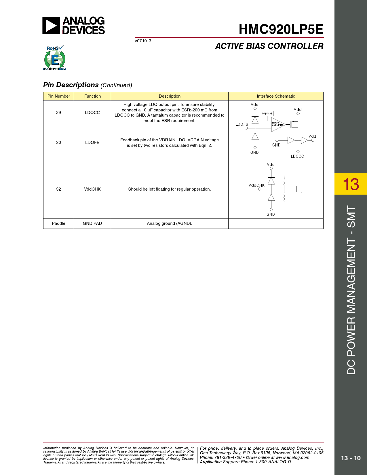 HMC920LP5E. ACTIVE BIAS CONTROLLER. Pin Descriptions. 13 - 10