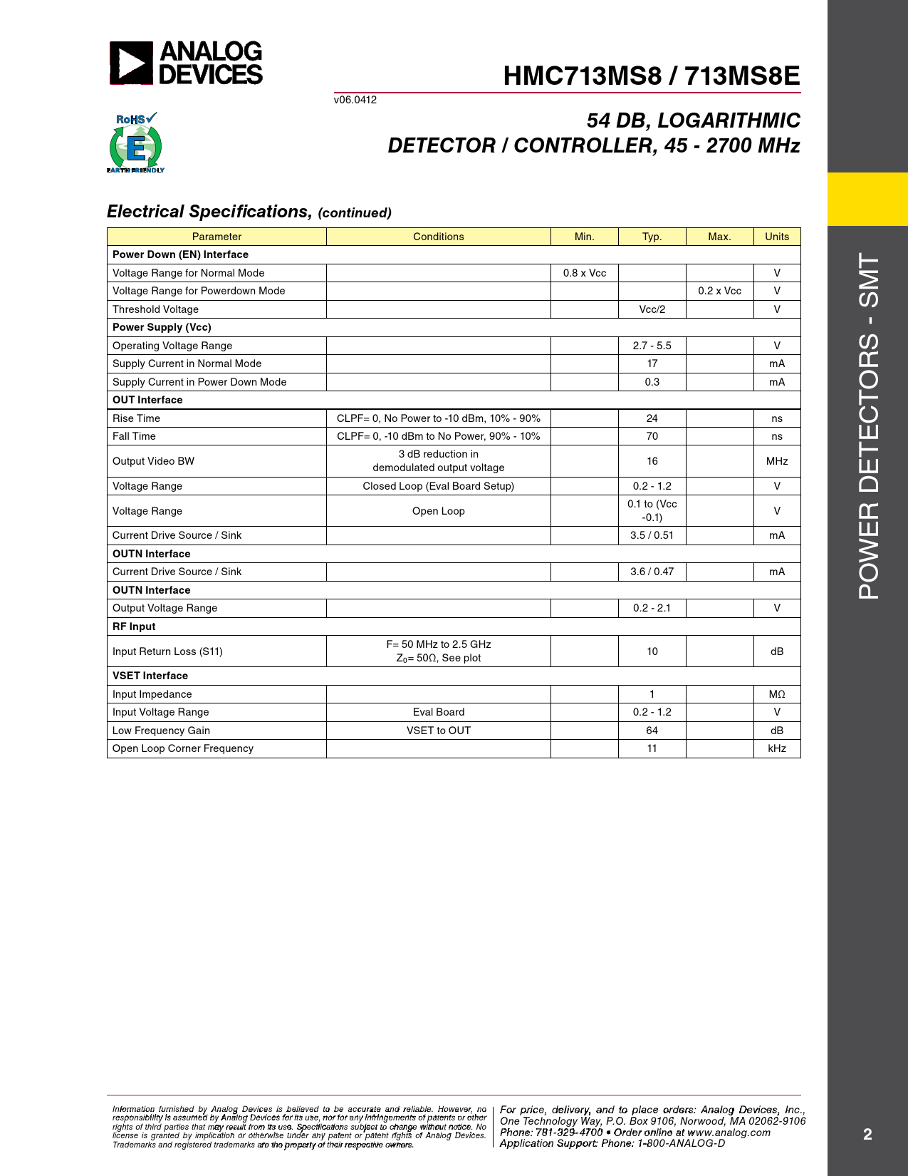 Datasheet HMC713MS8, 713MS8E (Analog Devices) - 2