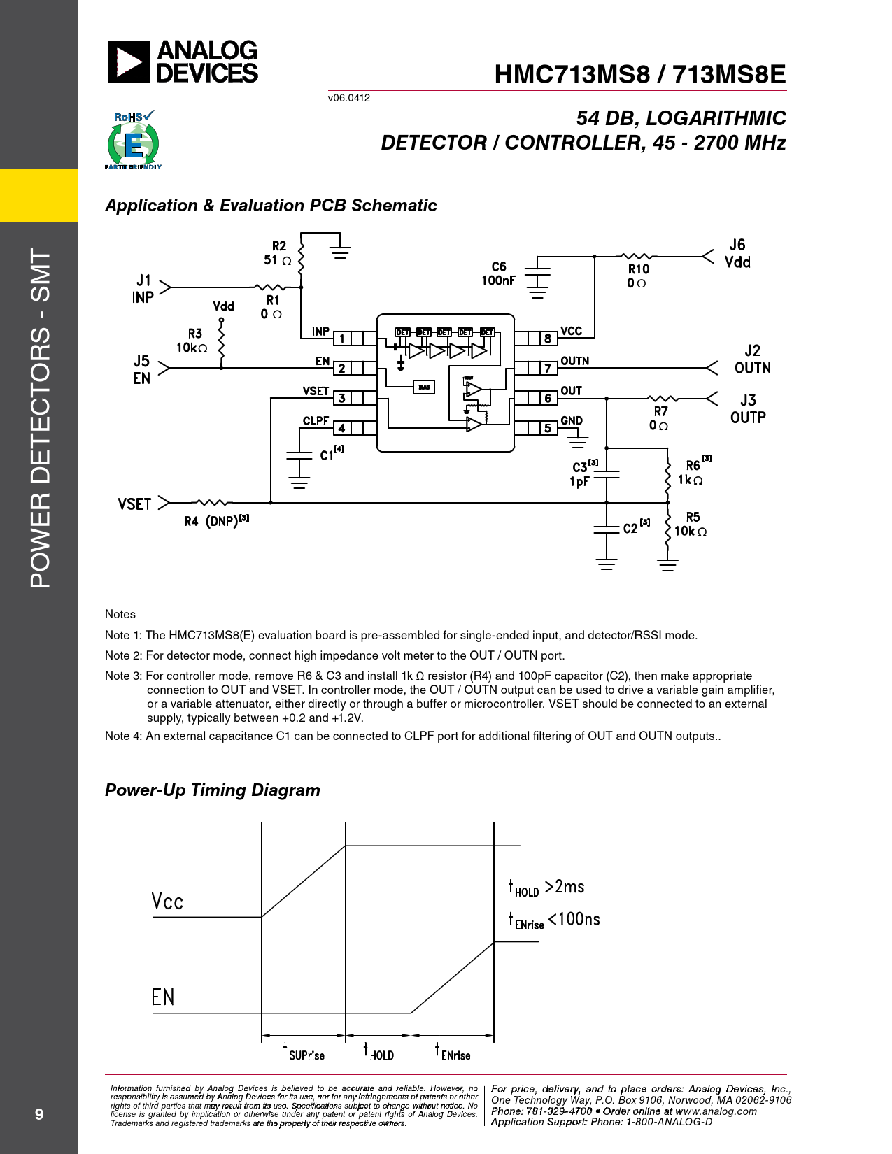 HMC713MS8 / 713MS8E. 54 DB, LOGARITHMIC. DETECTOR / CONTROLLER, 45 - 2700 MHz. Application & Evaluation PCB Schematic