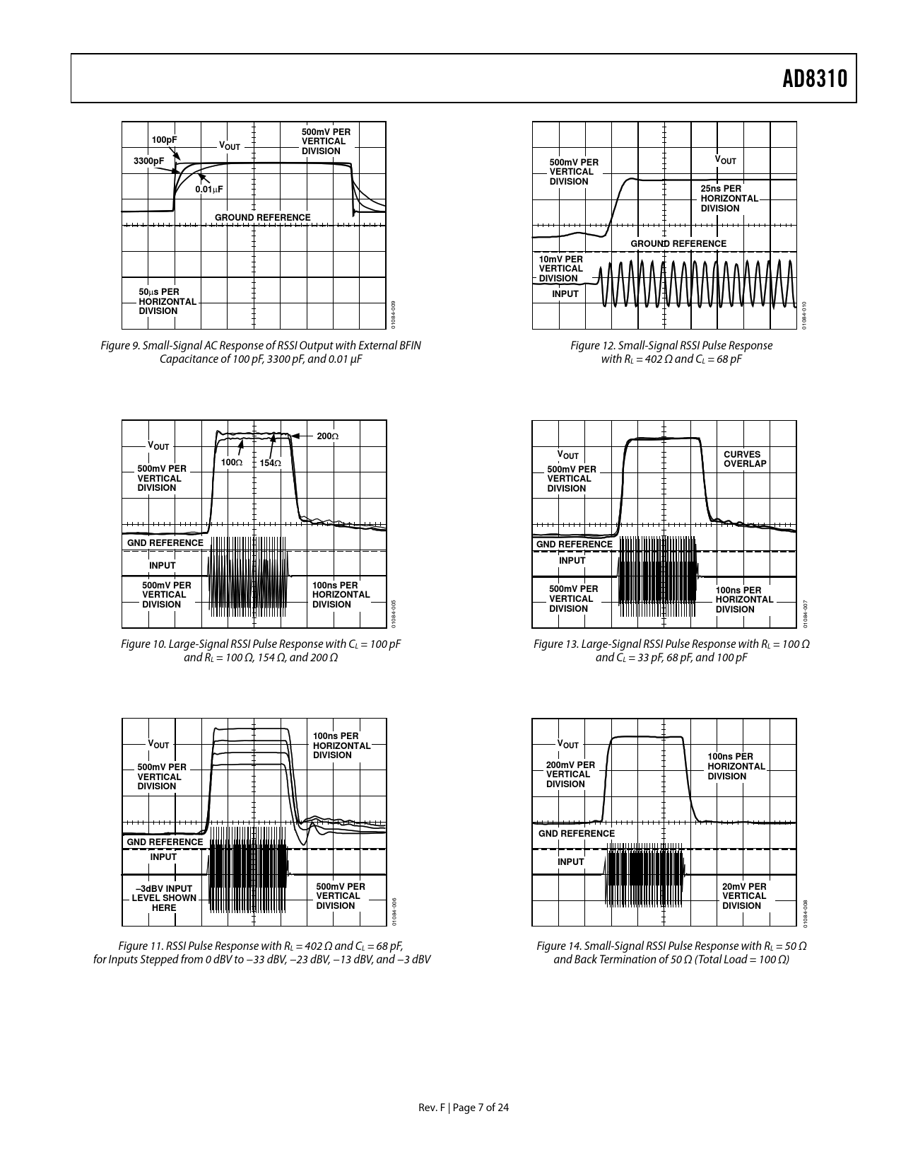 AD8310 500mV PER 100pF VERTICAL VOUT DIVISION 3300pF V 500mV PER OUT VERTICAL DIVISION 0.01