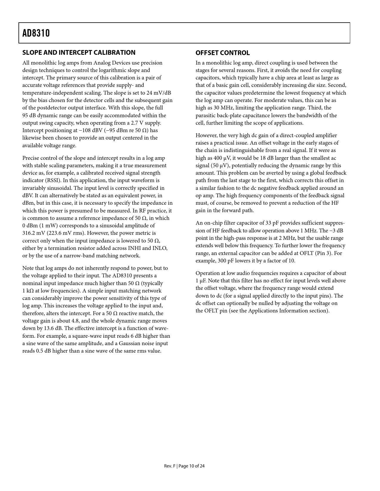 Seiten / Seite24 / 10 — AD8310. SLOPE AND INTERCEPT CALIBRATION. OFFSET CONTROL