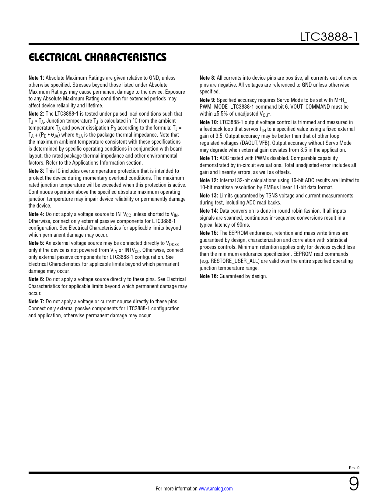 ELECTRICAL CHARACTERISTICS. Note 1:. Note 8:. Note 9:. Note 2:. Note 10:. Note 11:. Note 3:. Note 12:. Note 13:. Note 4:. Note 14:. Note 15: