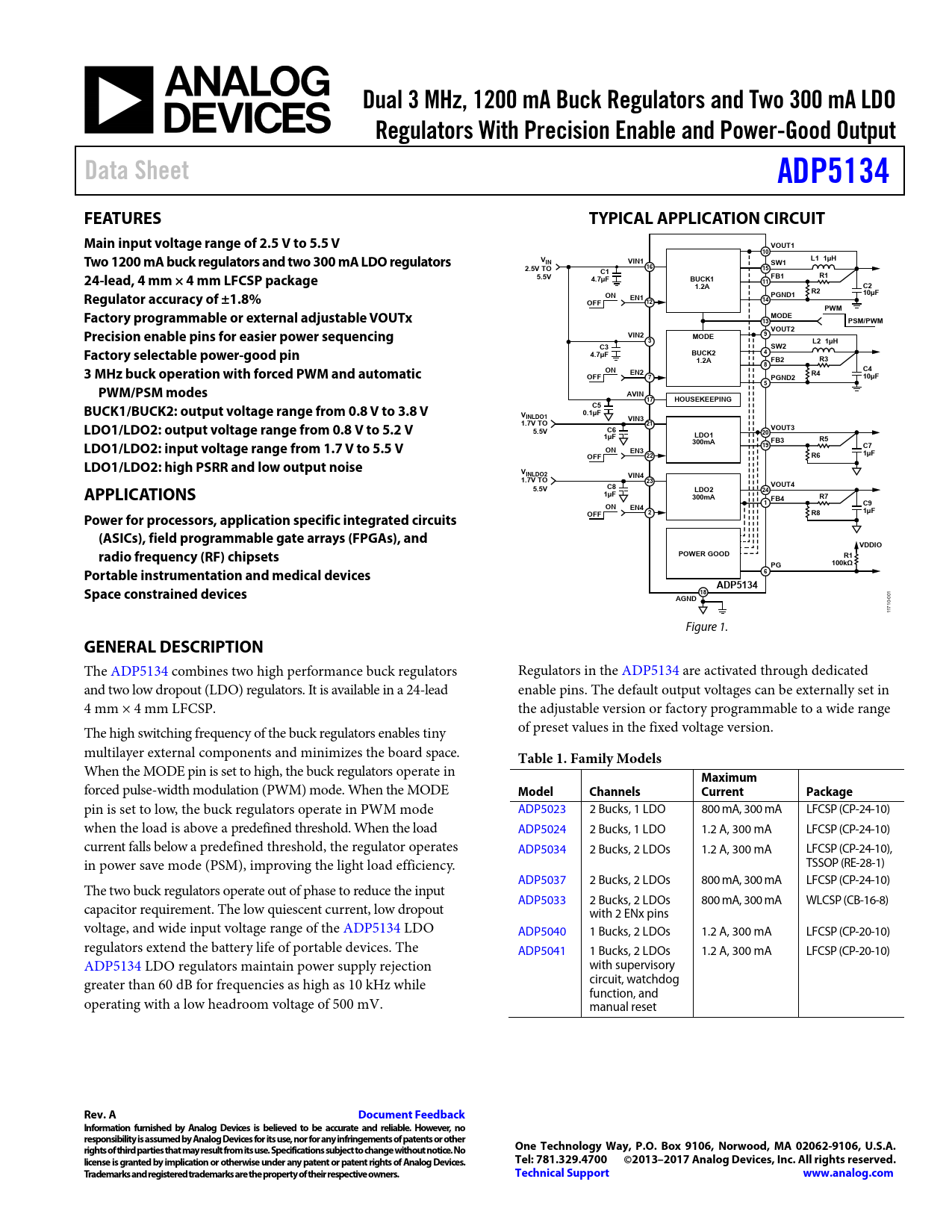 Dual 3 MHz, 1200 mA Buck Regulators and Two 300 mA LDO. Regulators With Precision Enable and Power-Good Output. Data Sheet