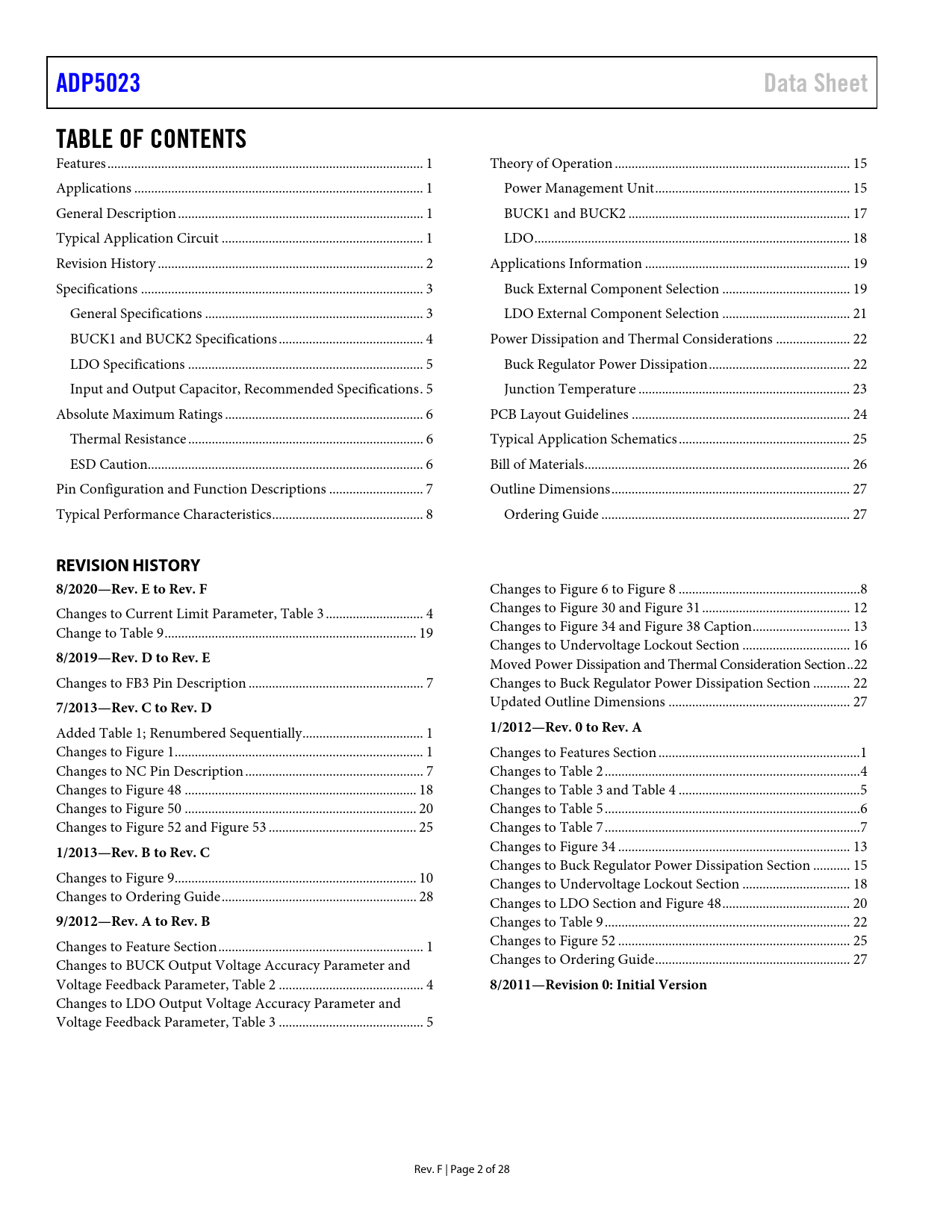 ADP5023. Data Sheet. TABLE OF CONTENTS. REVISION HISTORY. 8/2020—Rev. E to Rev. F. 8/2019—Rev. D to Rev. E. 7/2013—Rev. C to Rev. D