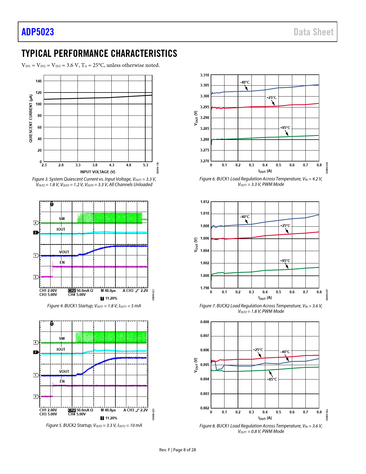ADP5023. Data Sheet. TYPICAL PERFORMANCE CHARACTERISTICS. 3.310. 140. –40°C. 3.305. 120. 3.300. +25°C. (µ 100. 3.295. RRE. ( T 3.290. 3.285. +85°C