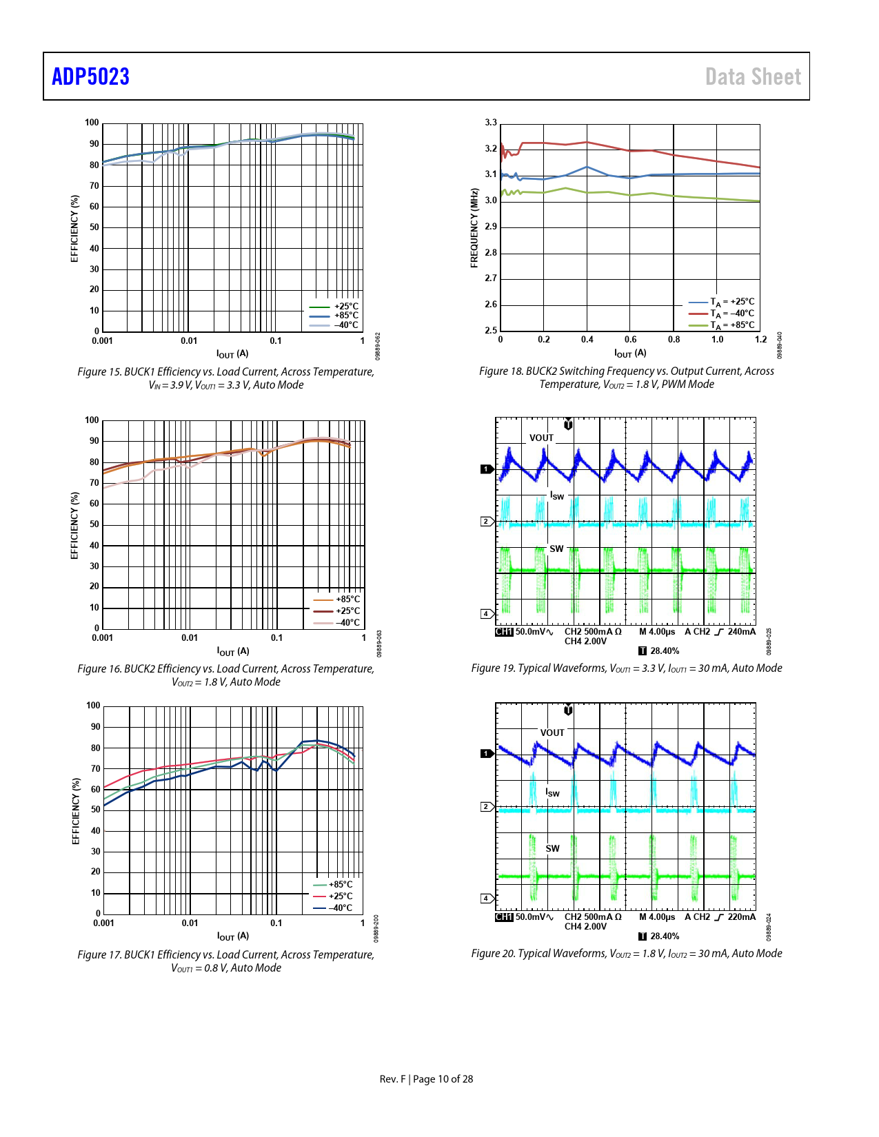 ADP5023. Data Sheet. 100. 3.3. 3.2. 3.1. ) %. Hz 3.0. Y C. 2.9. FFIC. E 2.8. 2.7. 2.6. TA = +25°C. +25°C. +85°C. TA = –40°C. –40°C. 2.5. A = +85°C. 0.001. 0.01. 0.1