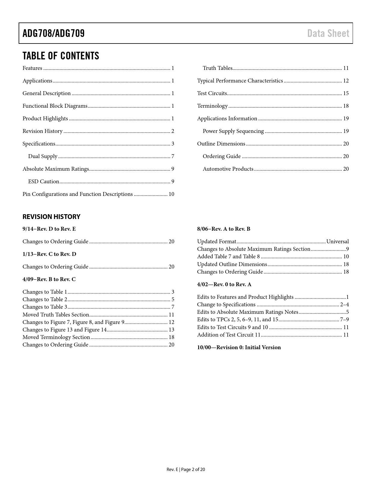 REVISION HISTORY 9/14−Rev. D to Rev. E 8/06−Rev. A to Rev. B