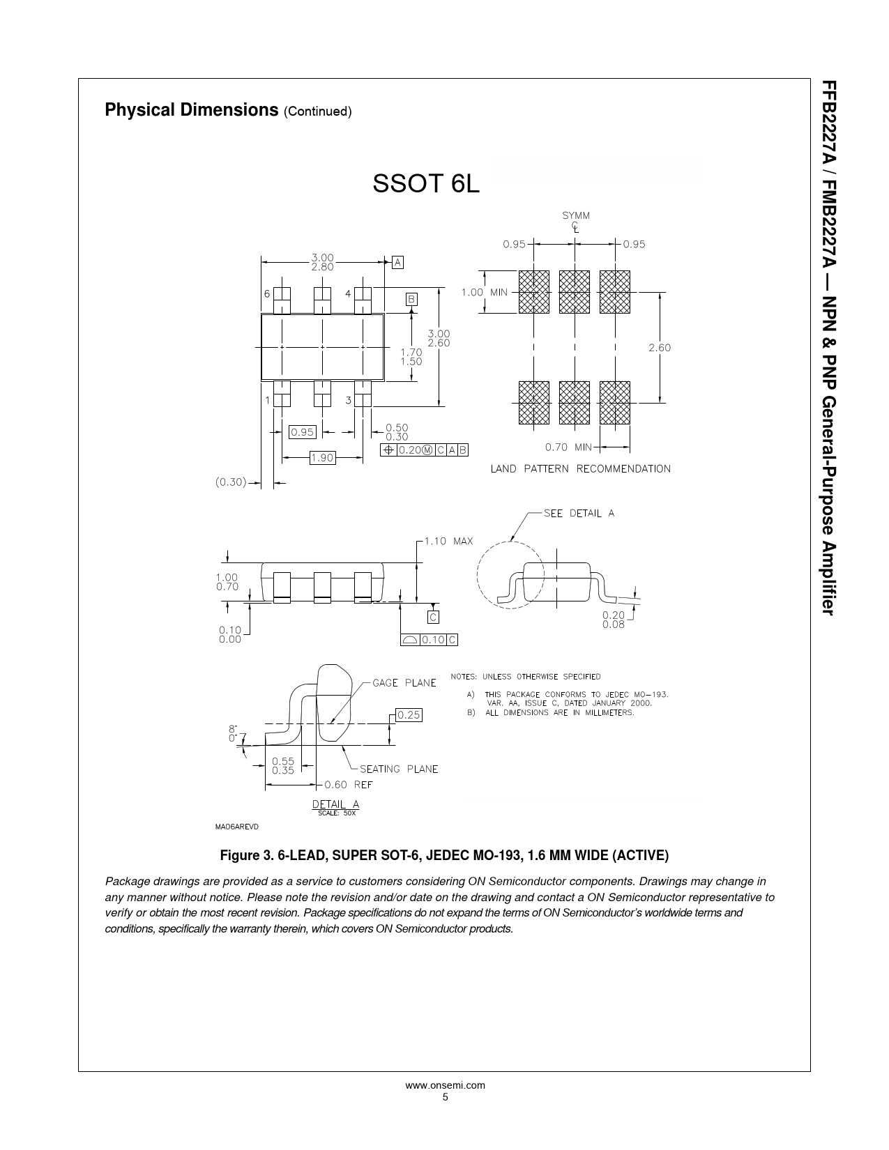Package drawings are provided as a service to customers considering ON Semiconductor components. Drawings may change in any manner without notice. Please note the revision and/or date on the drawing and contact a ON Semiconductor representative to verify or obtain the most recent revision. Package specifications do not expand the terms of ON Semiconductor’s worldwide terms and conditions, specifically the warranty therein, which covers ON Semiconductor products. www.onsemi.com 5