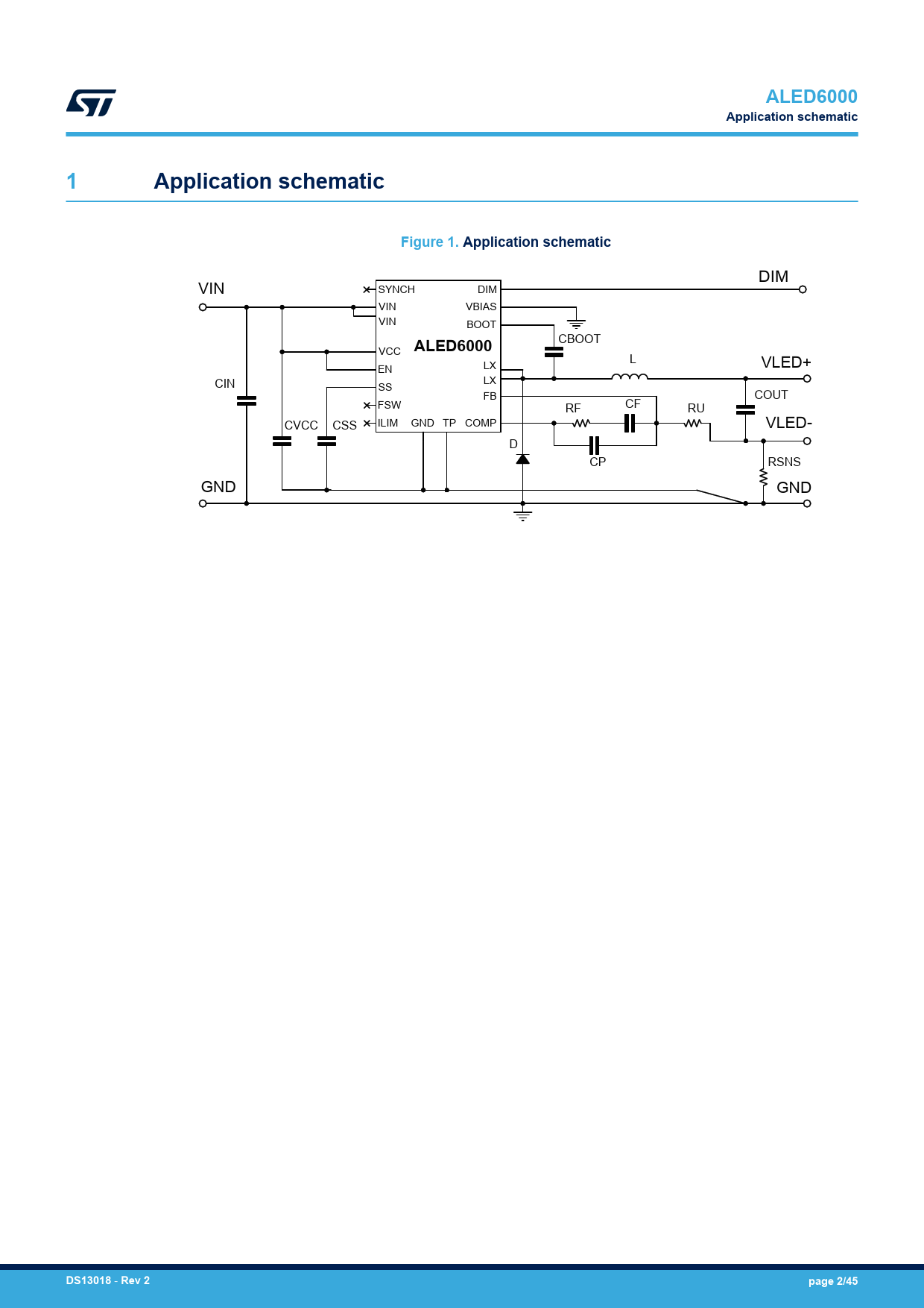 ALED6000. Application schematic. Figure 1. Application schematic. DS13018. Rev 2. page 2/45