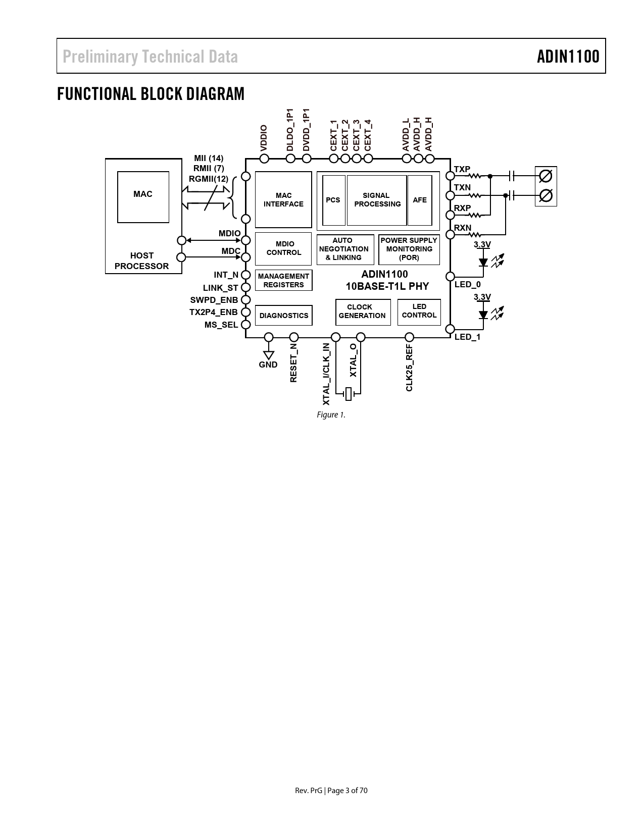 | Seiten / Seite | 70 / 3 — Preliminary Technical Data. ADIN1100. FUNCTIONAL BLOCK DIAGRAM. _1P DO. … |