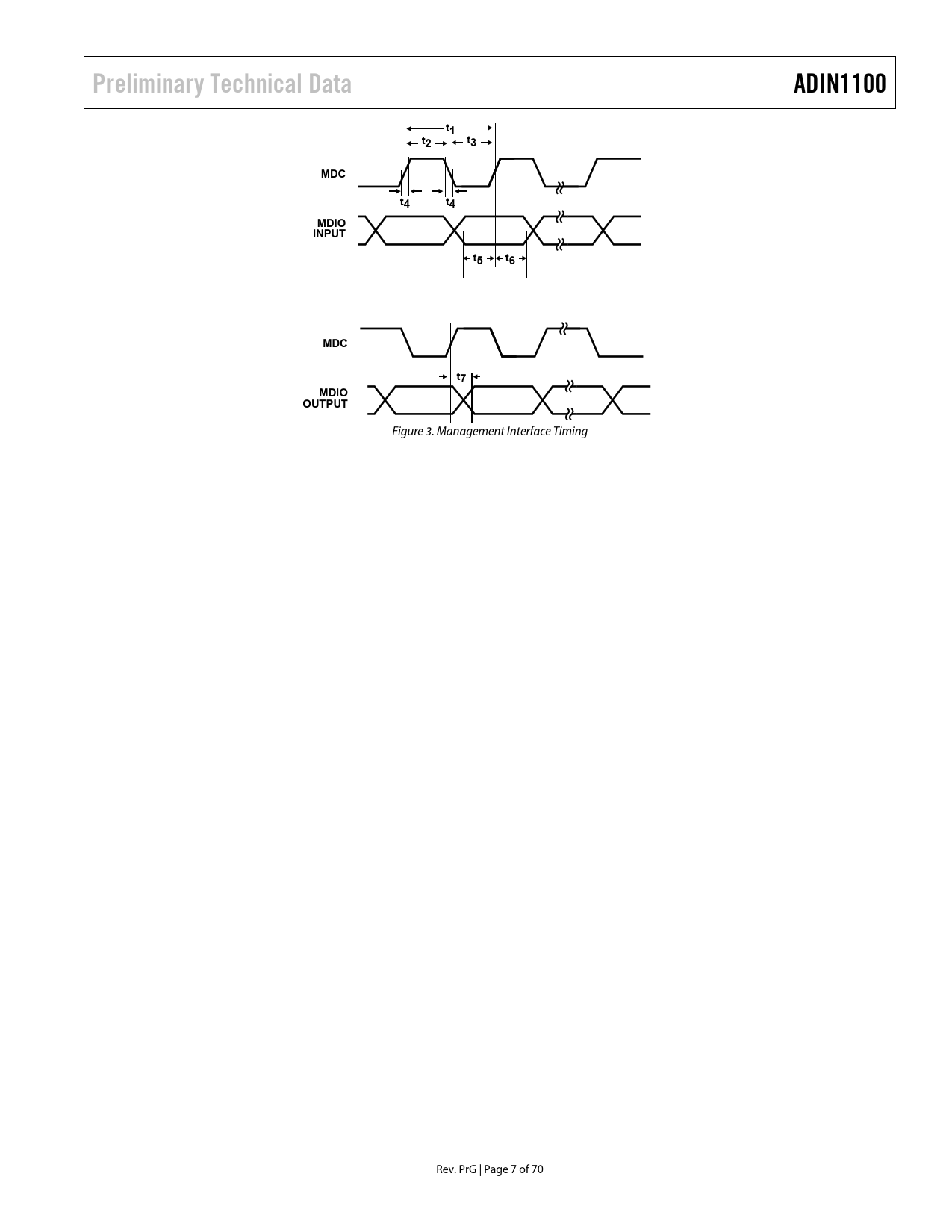 Preliminary Technical Data ADIN1100 t1 t2 t3 MDC t4 t4 MDIO INPUT t5 t6 MDC t7 MDIO OUTPUT
