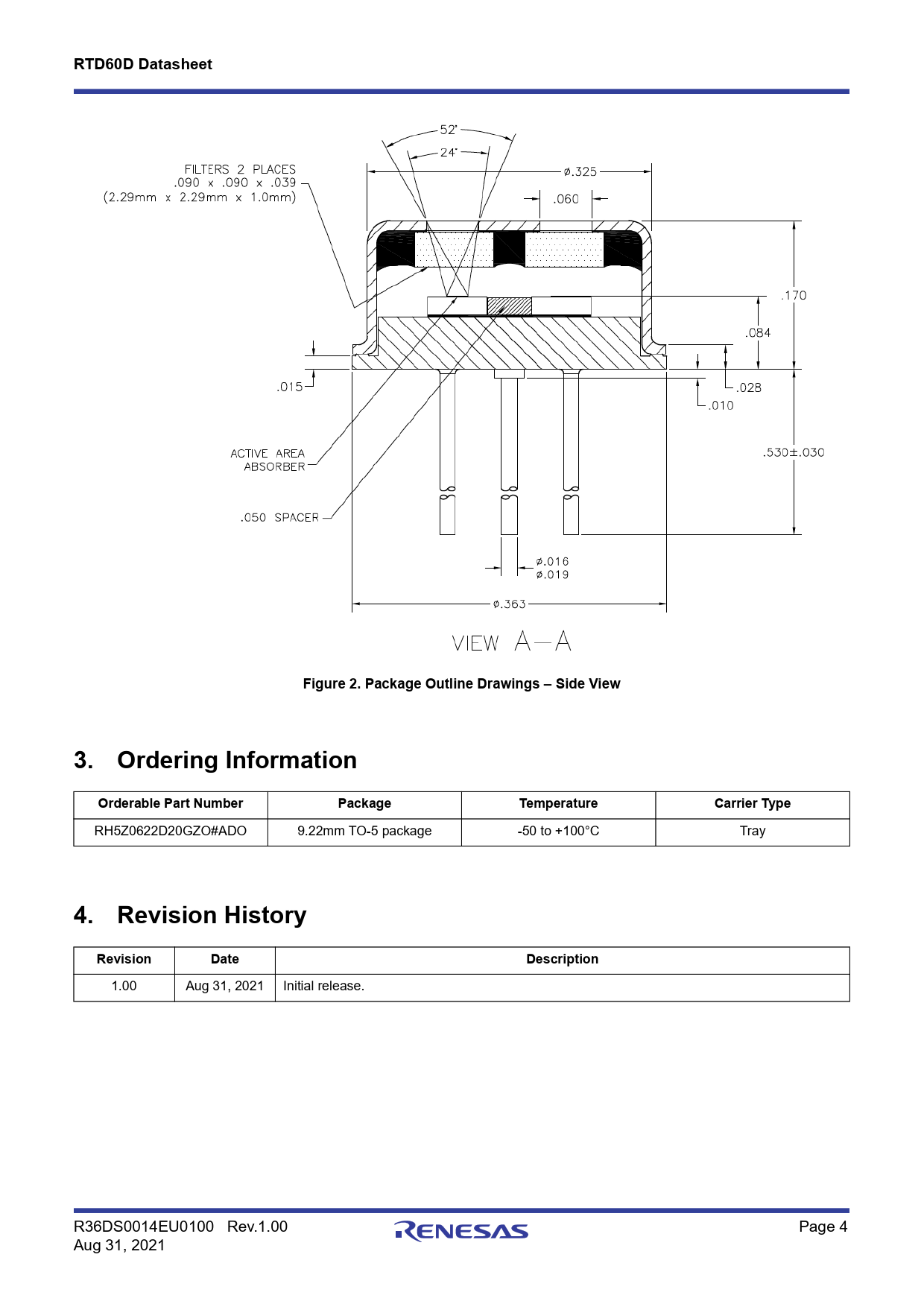 RTD60D Datasheet. Figure 2. Package Outline Drawings – Side View. 3. Ordering Information. Orderable Part Number. Package