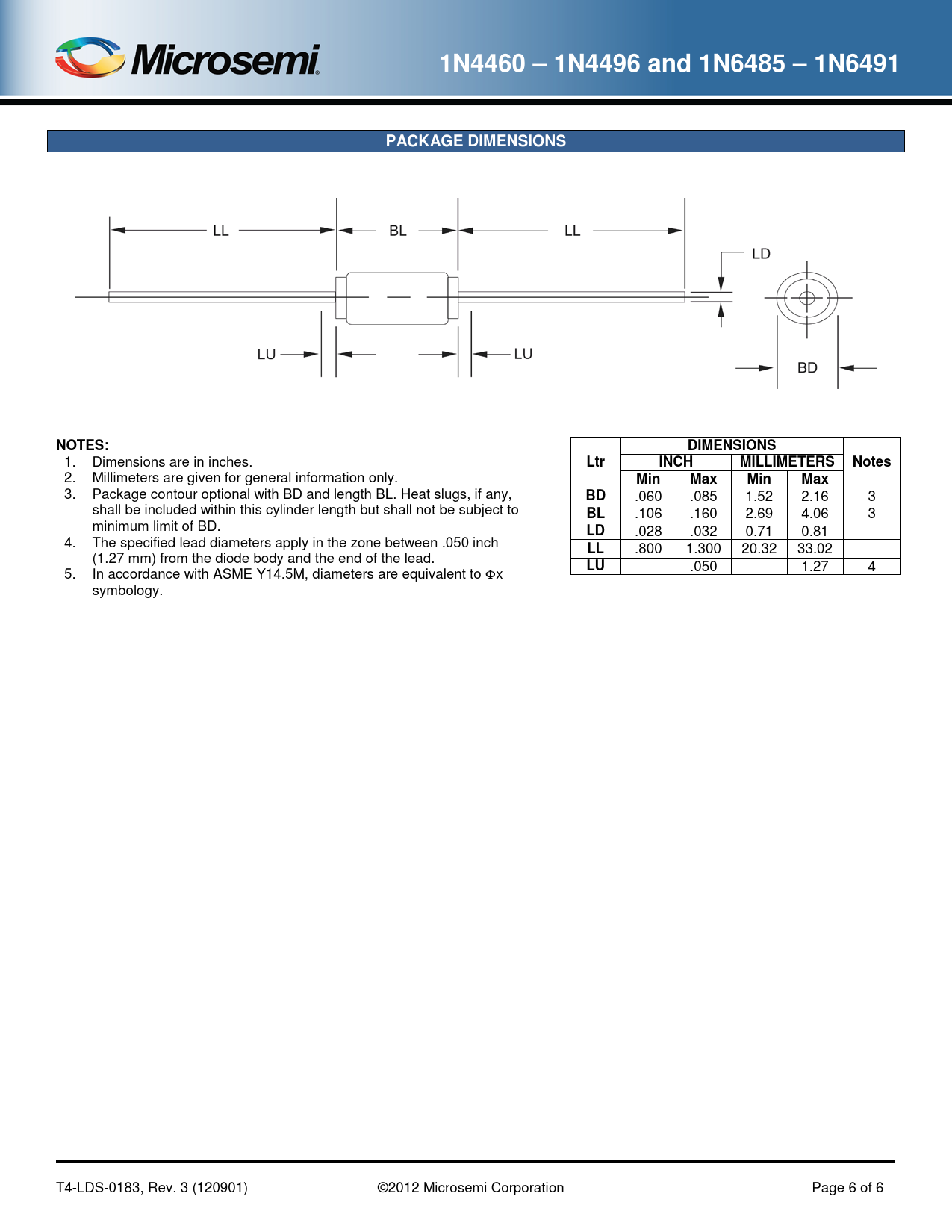 | Seiten / Seite | 6 / 6 — 1N4460 – 1N4496 and 1N6485 – 1N6491. PACKAGE DIMENSIONS NOTES:. 1. … |