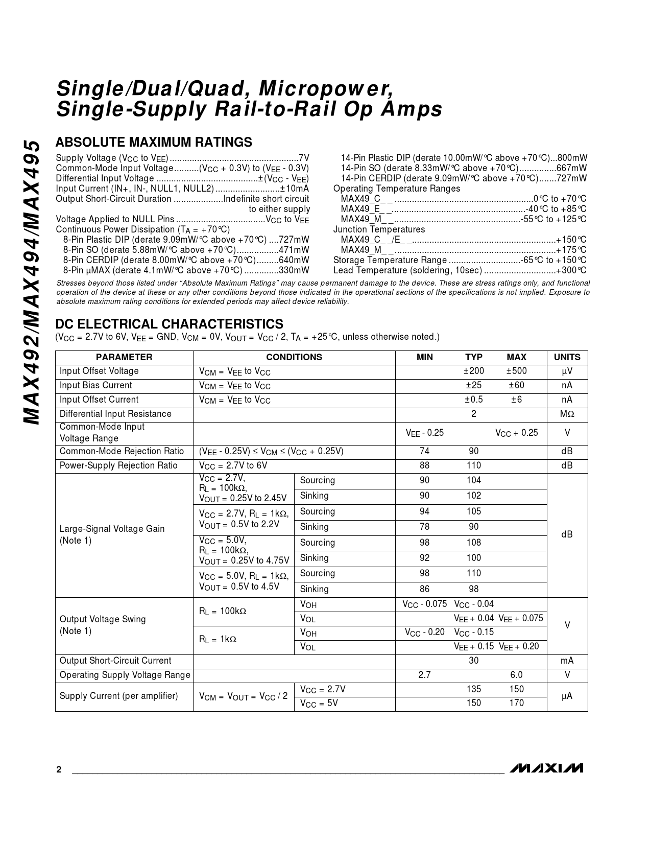 Datasheet MAX492, MAX494, MAX495 (Maxim) - 3