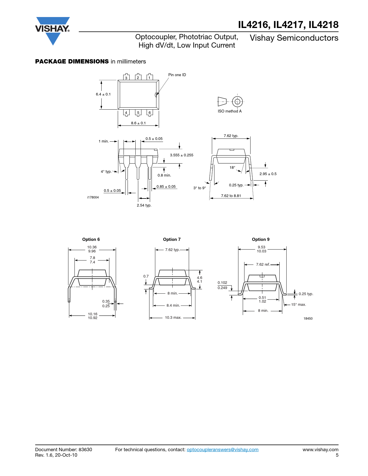 IL4216, IL4217, IL4218. PACKAGE DIMENSIONS. Option 6. Option 7. Option 9