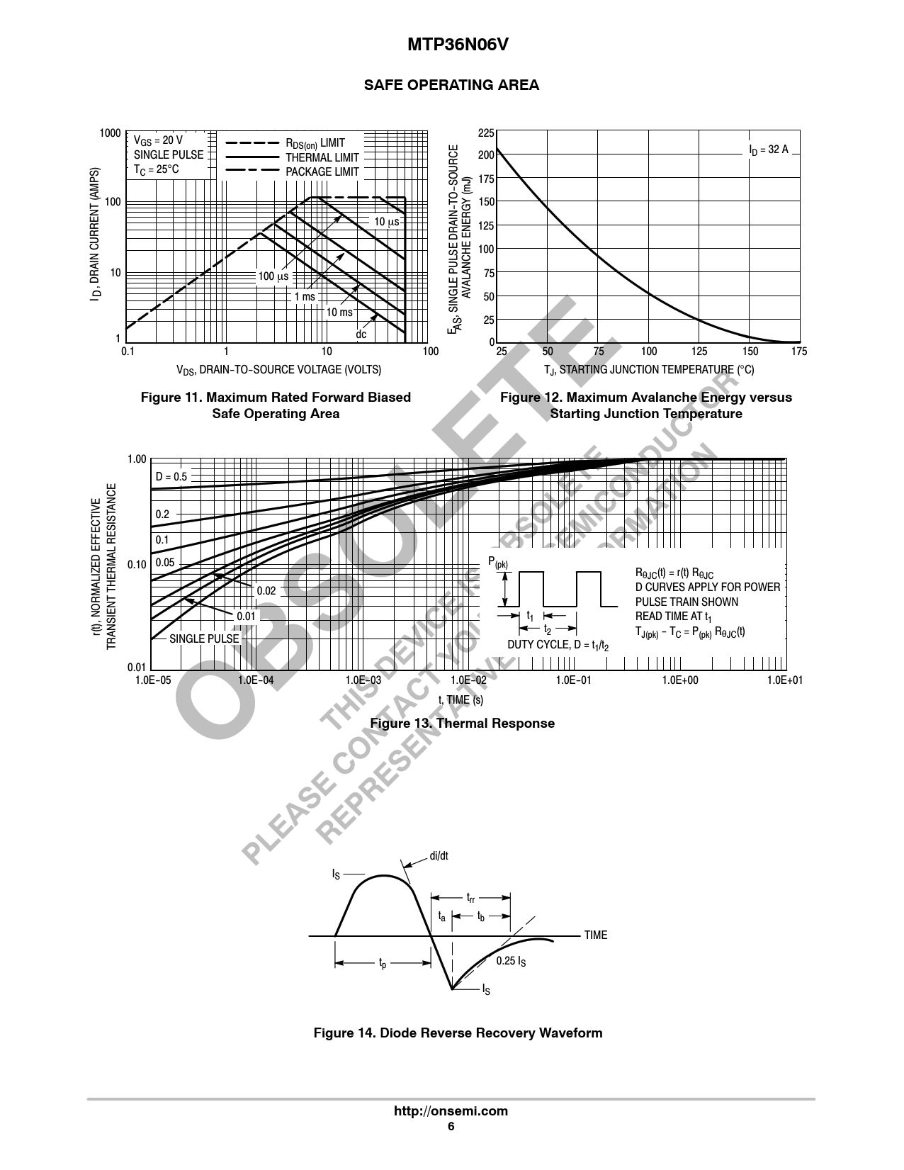 MTP36N06V. SAFE OPERATING AREA. Figure 11. Maximum Rated Forward Biased. Figure 12. Maximum Avalanche Energy versus