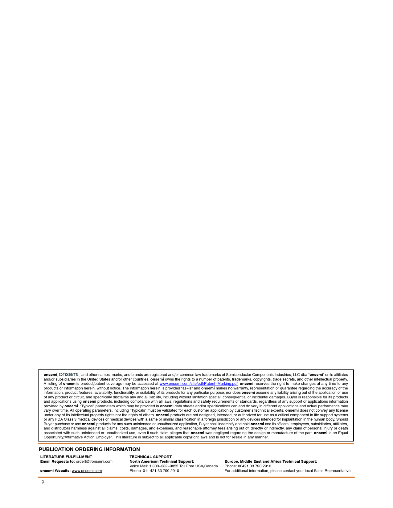 onsemi PUBLICATION ORDERING INFORMATION LITERATURE FULFILLMENT TECHNICAL SUPPORT Email Requests to: