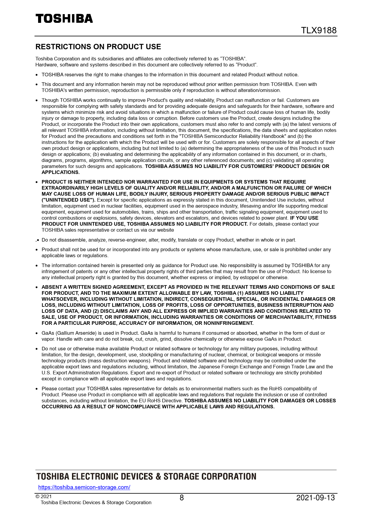 https://toshiba.semicon-storage.com/ © 2 021 8 2021-09-13 Toshiba Electronic Devices & Storage Corporation