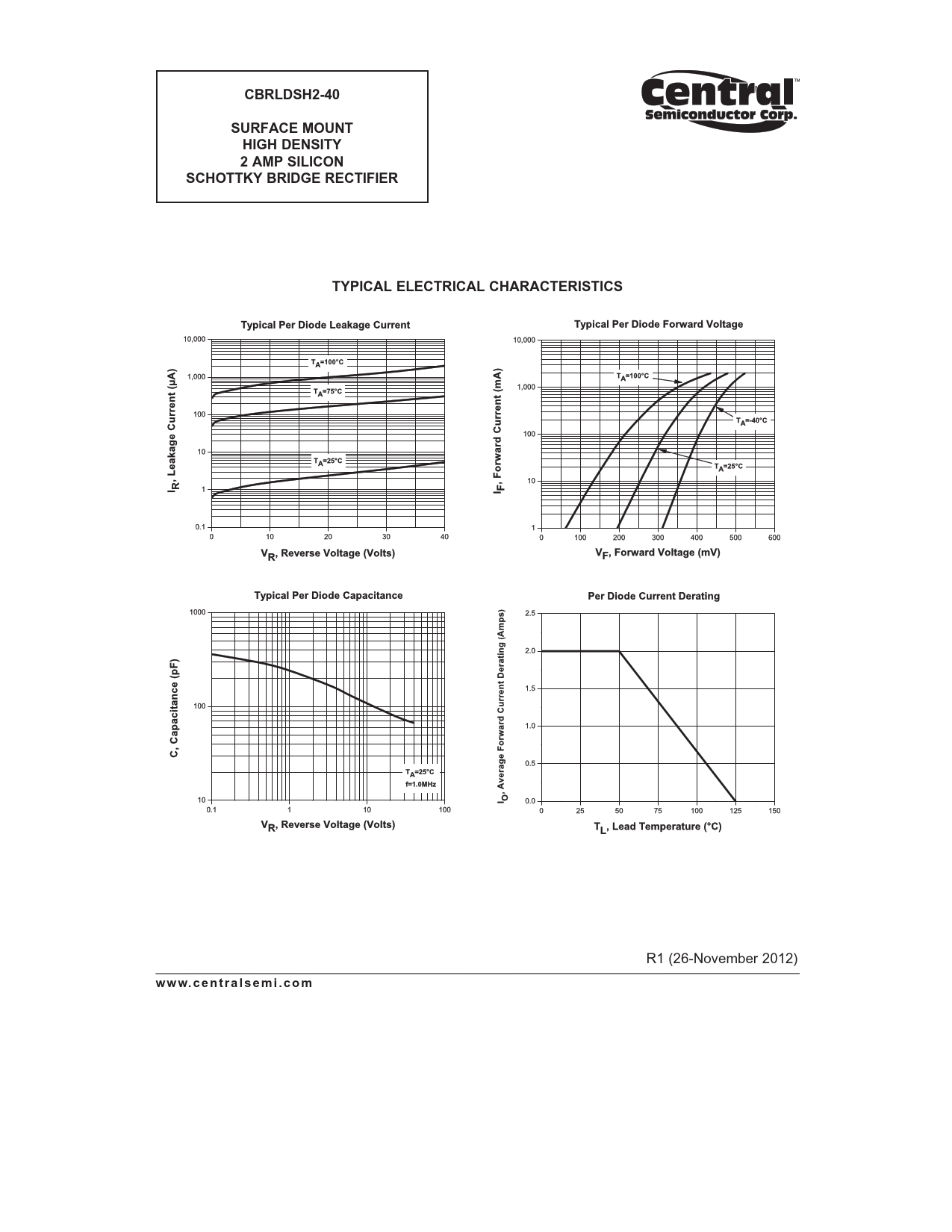 Modelllinie für dieses Datenblatt Textversion des Dokuments CBRLDSH2-40 SURFACE MOUNT HIGH DENSITY 2 AMP SILICON SCHOTTKY BRIDGE RECTIFIER TYPICAL ELECTRICAL CHARACTERISTICS R1 (26-November 2012)w w w. c e n t r a l s e m i . c o m