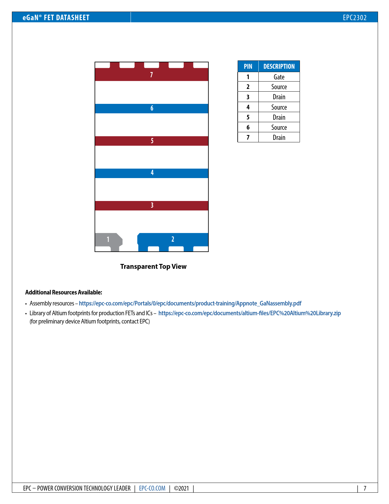 eGaN® FET DATASHEET. PIN. DESCRIPTION. Transparent Top View. Additional Resources Available: