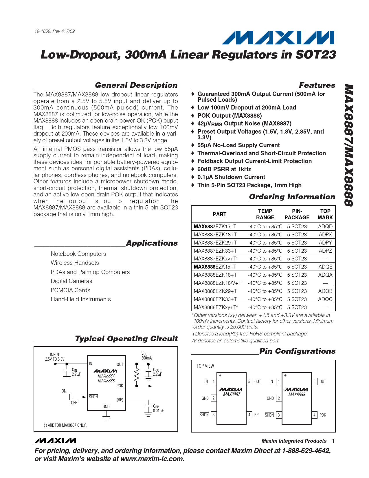 Datasheet MAX8887, MAX8888 (Maxim)