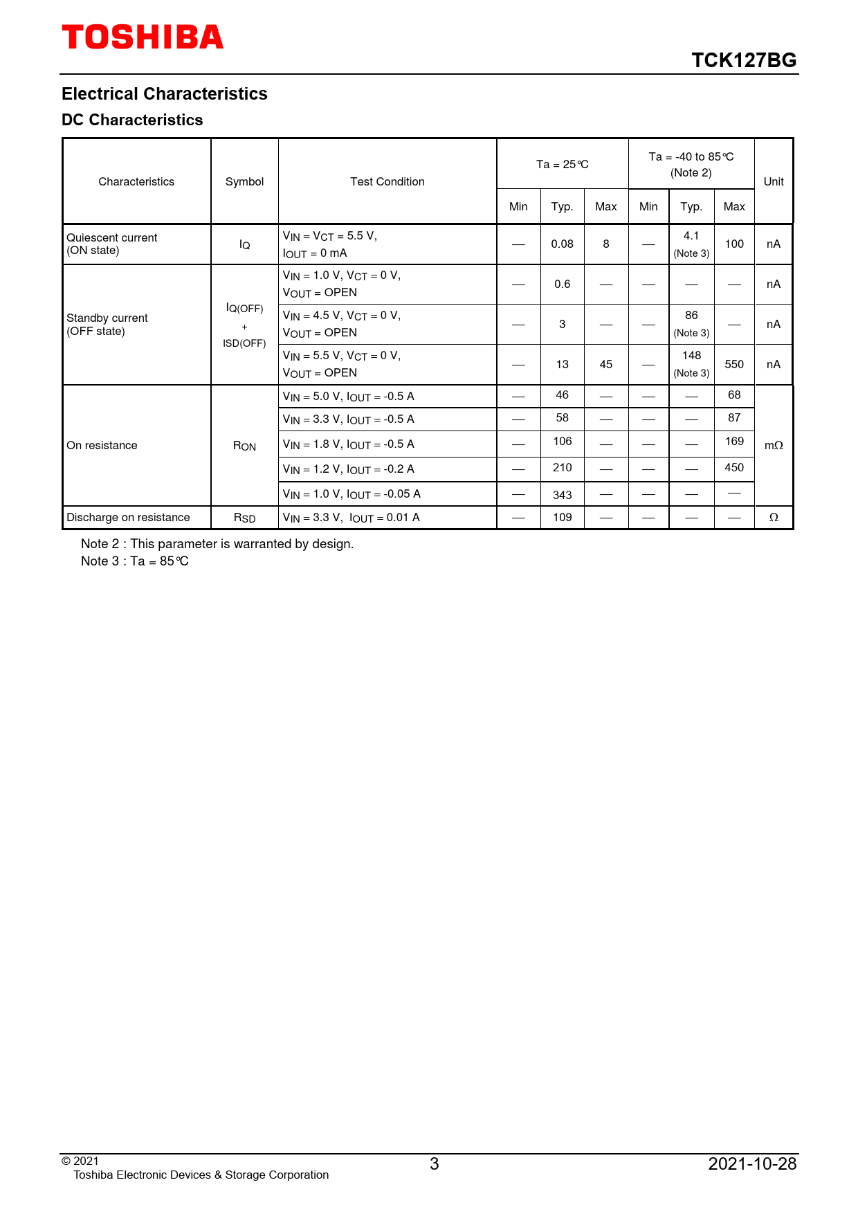 | Seiten / Seite | 13 / 3 — TCK127BG. Electrical Characteristics DC Characteristics |
