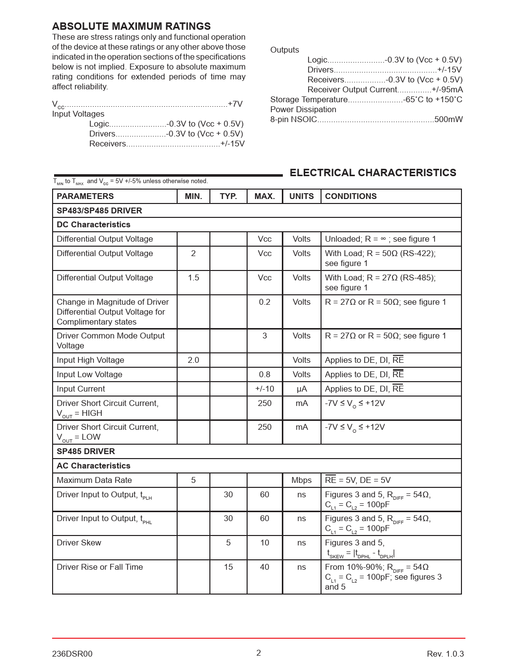 Datasheet SP483, SP485 (MaxLinear) - 2