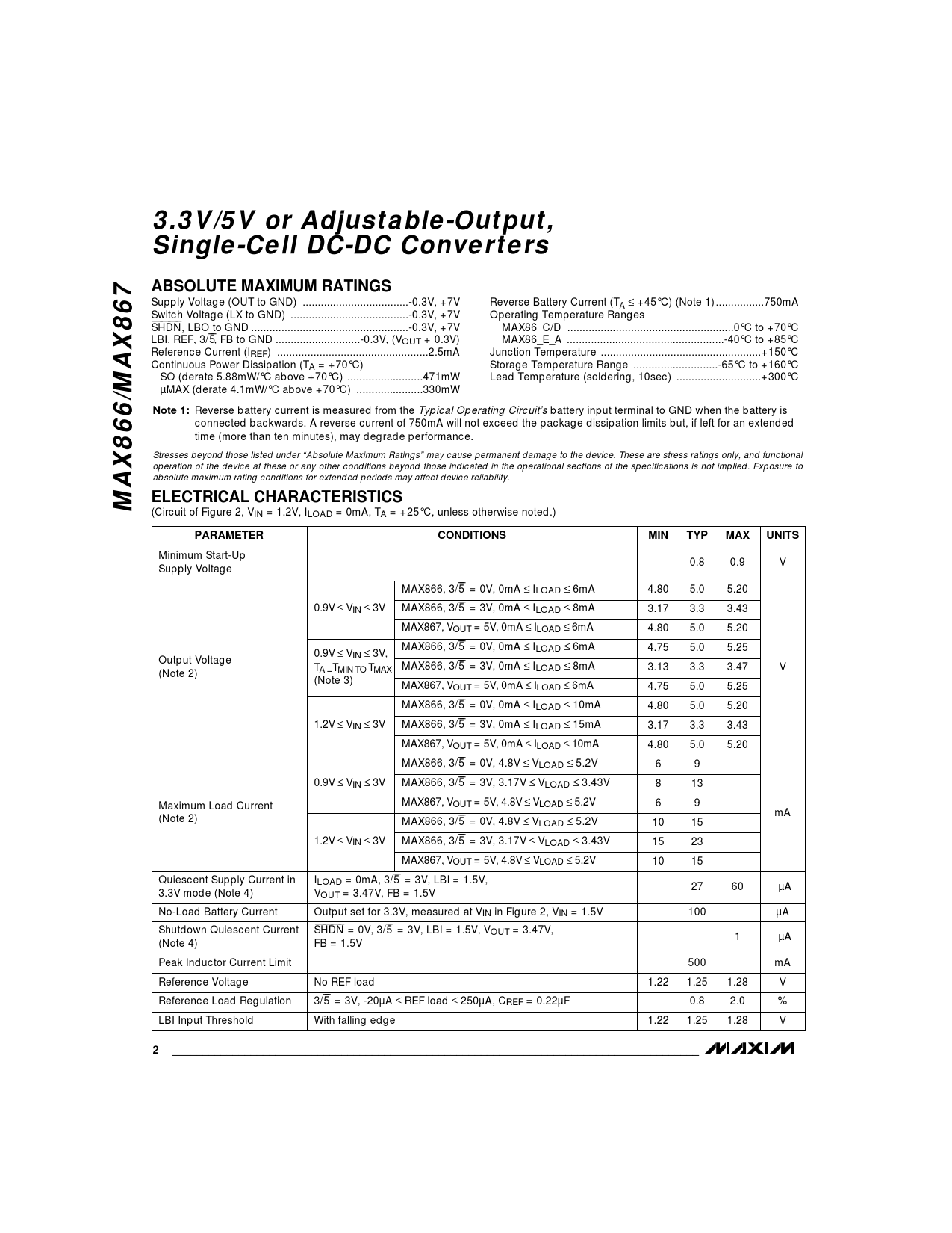 Datasheet MAX866, MAX867 (Maxim) - 2