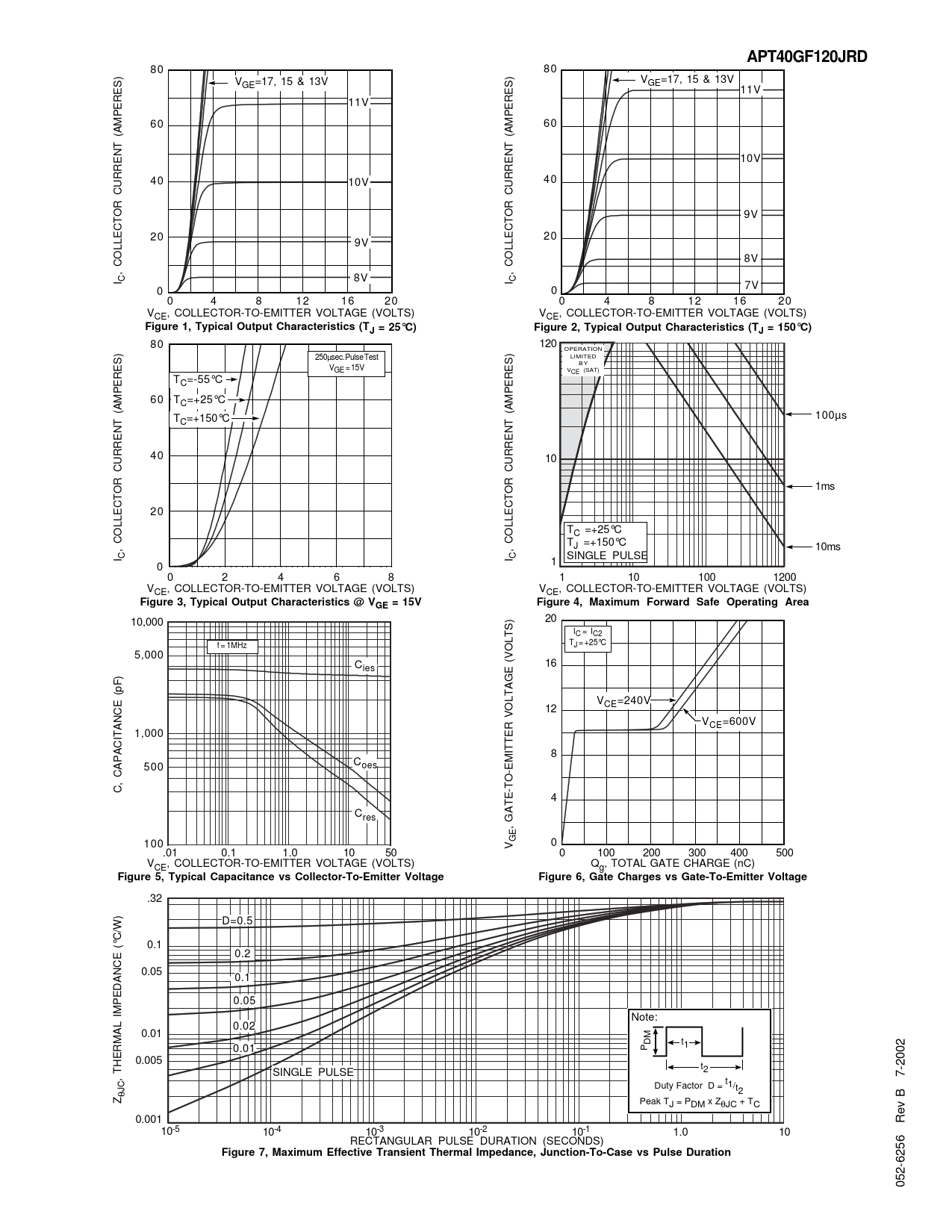 APT40GF120JRD. Figure 1, Typical Output Characteristics (TJ = 25°C). Figure 2, Typical Output Characteristics (TJ = 150°C)