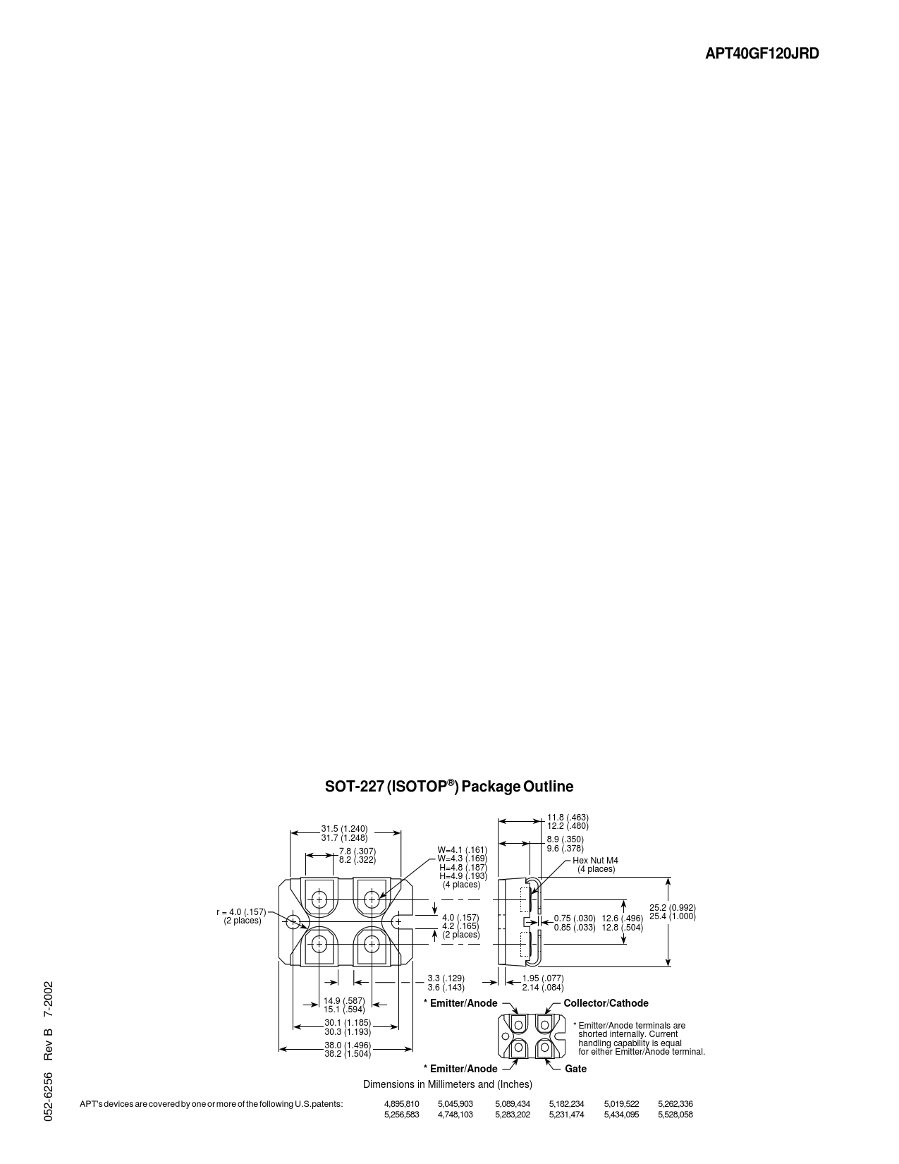 Dimensions in Millimeters and (Inches) APT's devices are covered by one or more of the following U.S.patents: 4,895,810 5,045,903 5,089,434 5,182,234 5,019,522 5,262,336 052-6256 Rev B 7-2002 5,256,583 4,748,103 5,283,202 5,231,474 5,434,095 5,528,058
