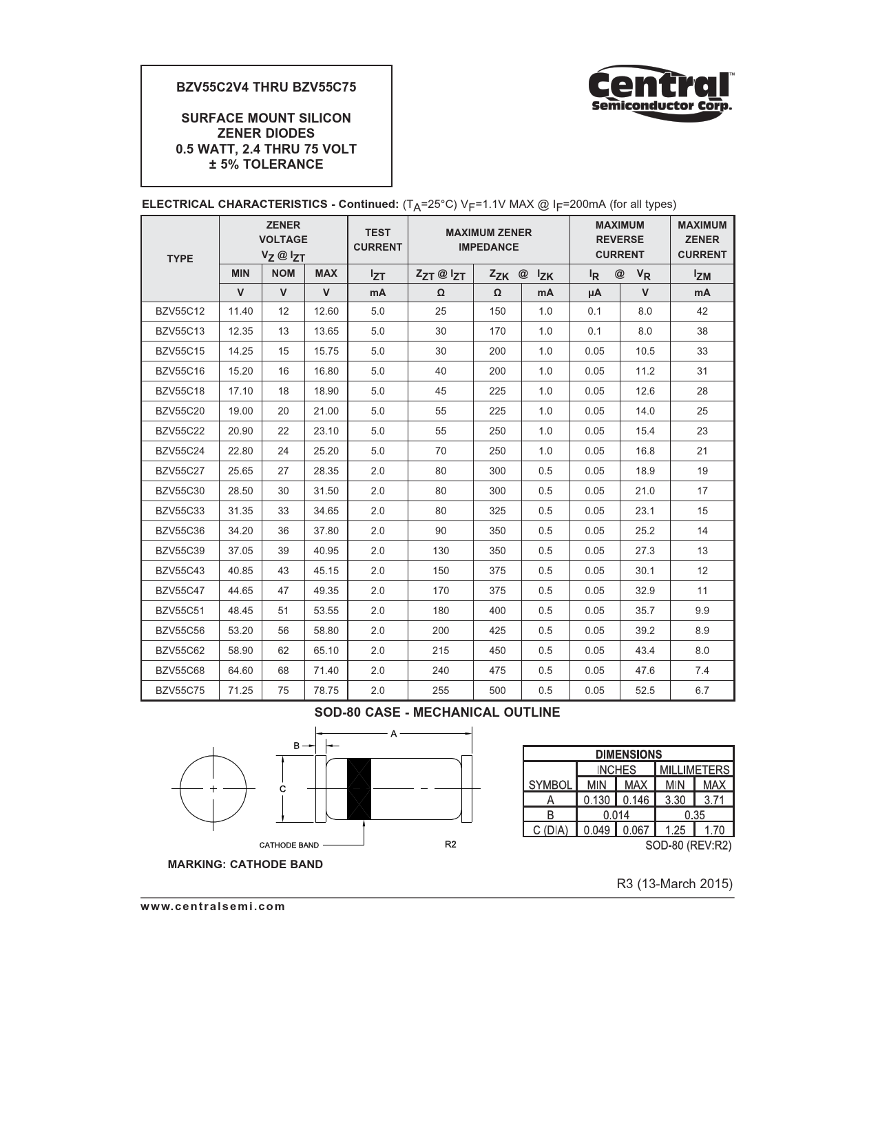 Datasheet BZV55C2V4 THRU BZV55C75 (Central Semiconductor) - 2