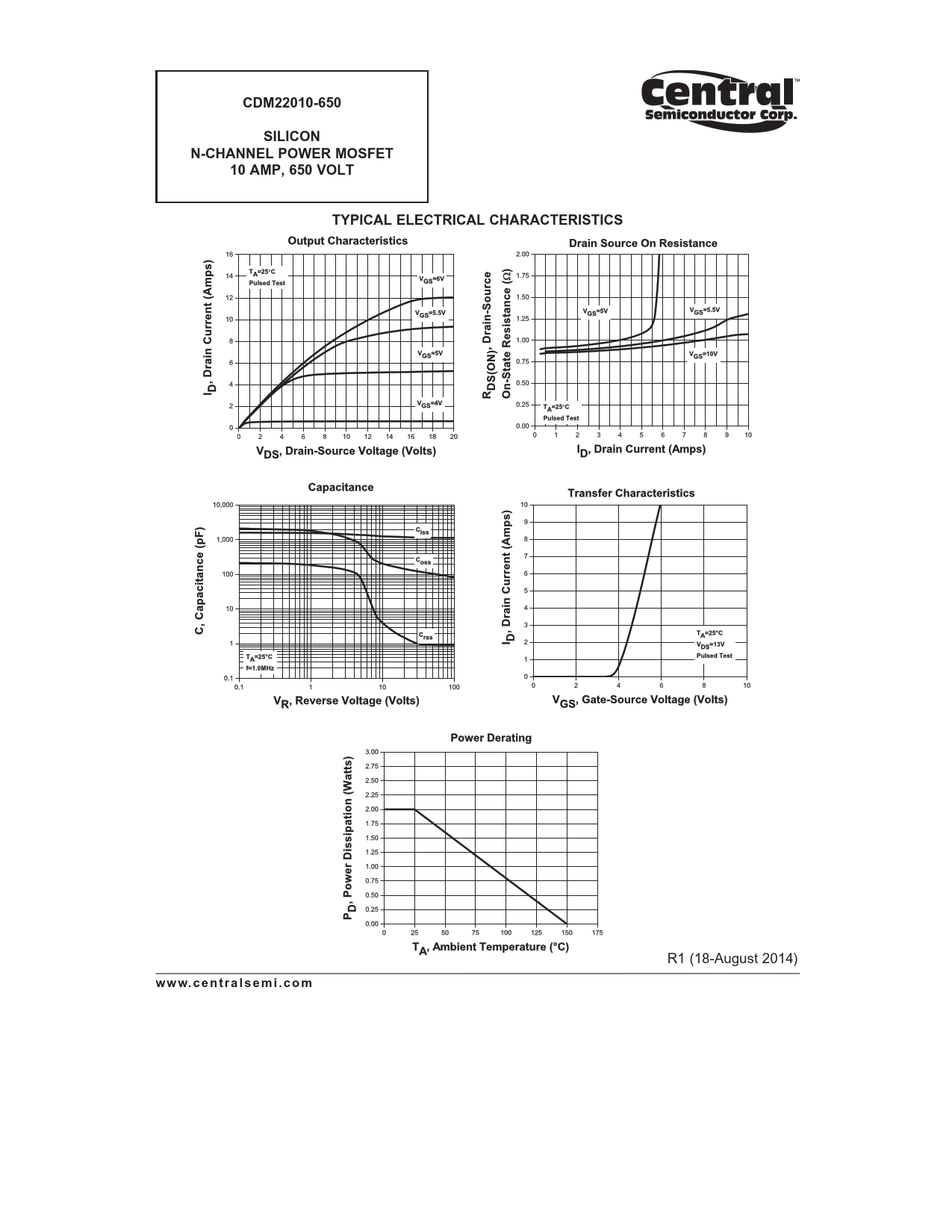 CDM22010-650. SILICON. N-CHANNEL POWER MOSFET. 10 AMP, 650 VOLT. TYPICAL ELECTRICAL CHARACTERISTICS