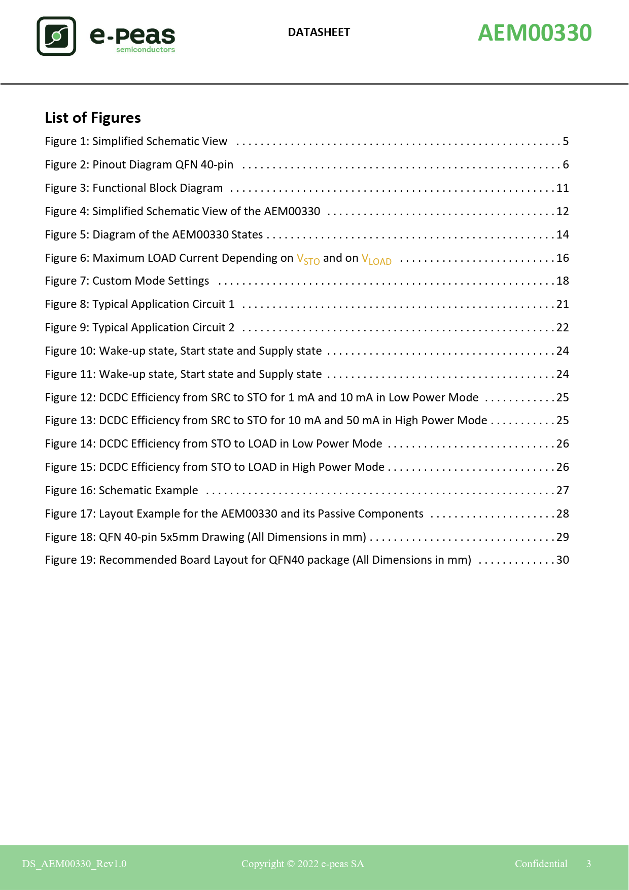 | Seiten / Seite | 30 / 3 — DATASHEET. AEM00330. List of Figures |