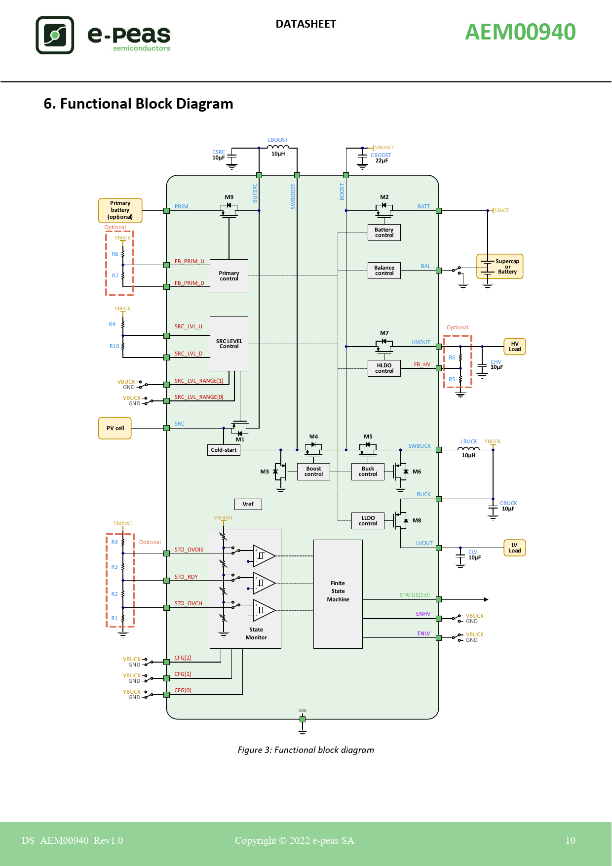 DATASHEET. AEM00940. 6. Functional Block Diagram. 10μH. 10μF. 22μF. Primary. battery. (optional). Battery. control. Supercap. Balance. SRC LEVEL