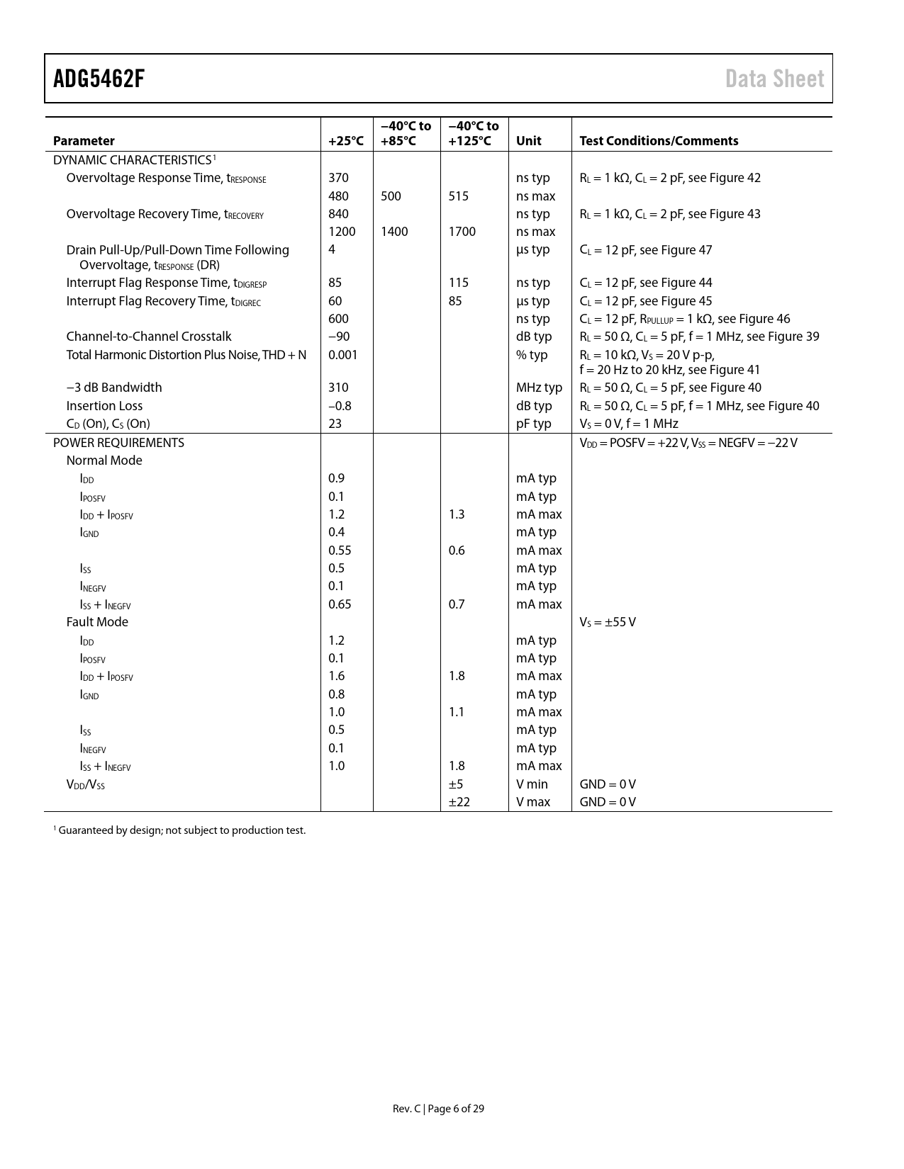 Seiten / Seite29 / 6 — ADG5462F. Data Sheet. −40°C to −40°C to. Parameter. +25°C +85°C. +125°C. …
