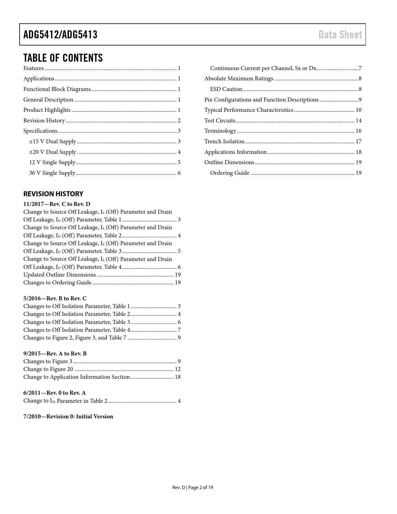 Seiten / Seite19 / 2 — ADG5412/ADG5413. Data Sheet. TABLE OF CONTENTS. REVISION HISTORY …