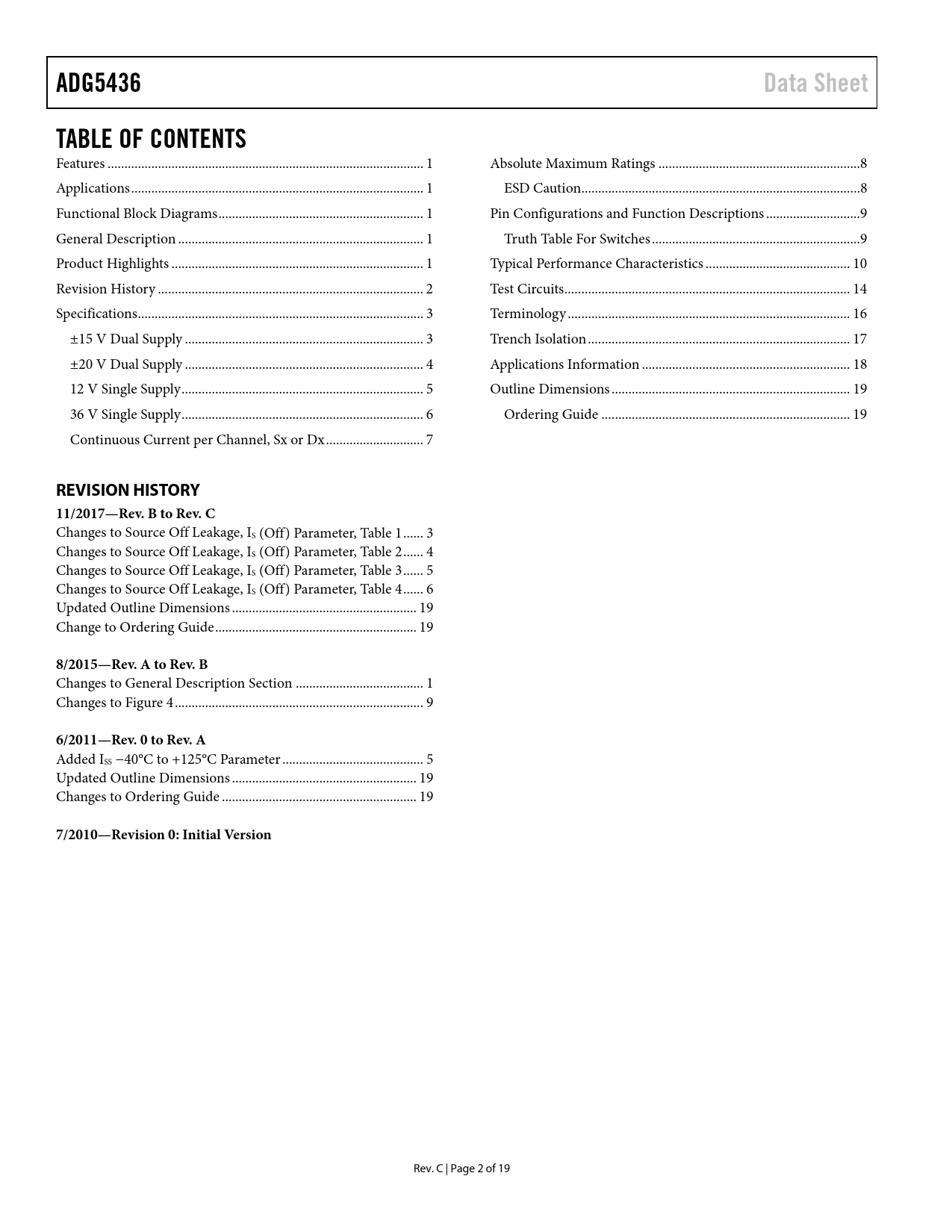 Seiten / Seite19 / 2 — ADG5436. Data Sheet. TABLE OF CONTENTS. REVISION HISTORY 11/2017—Rev. B …