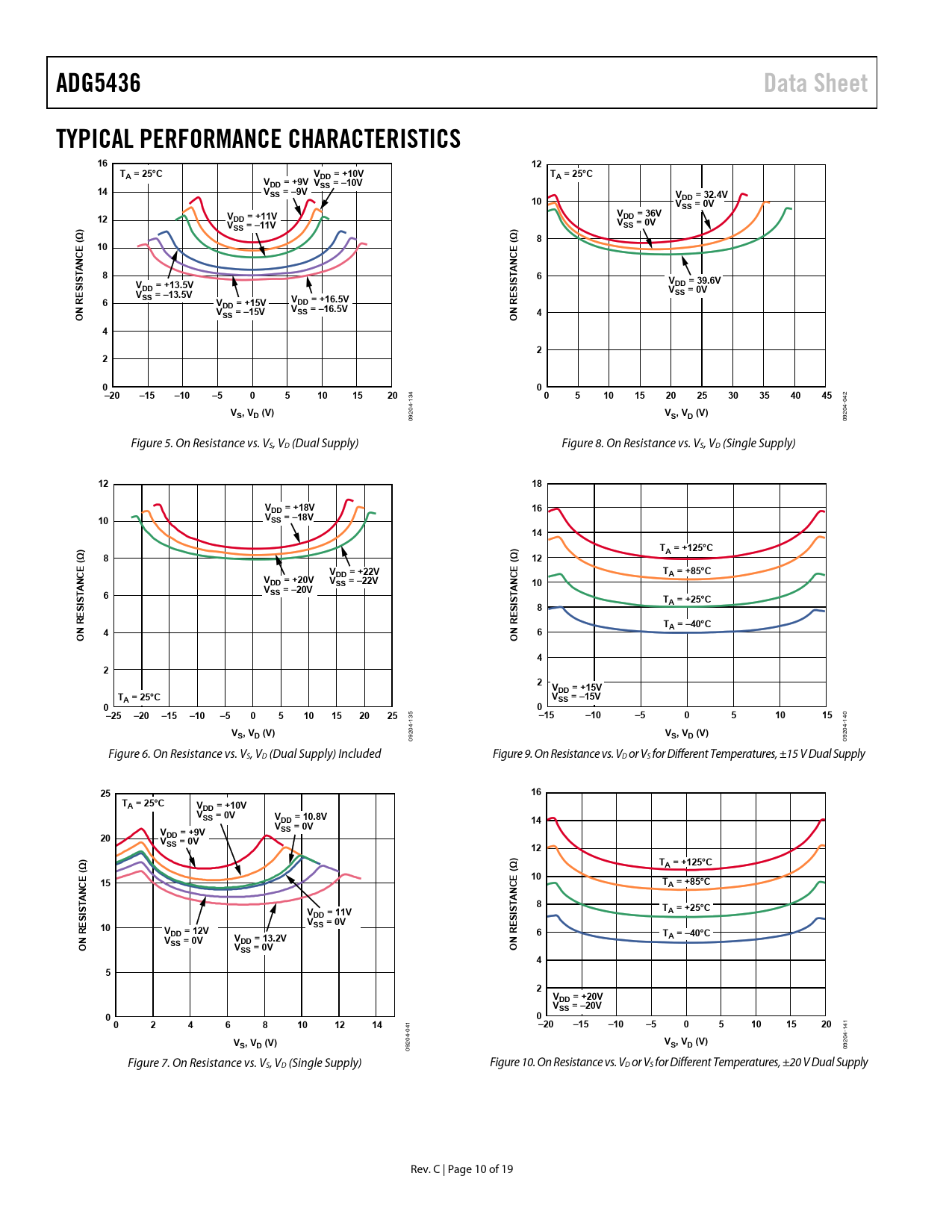 ADG5436. Data Sheet. TYPICAL PERFORMANCE CHARACTERISTICS. TA = 25°C. VDD = +10V. VDD = +9V VSS = –10V. VSS = –9V. DD = 32.4V. VSS = 0V
