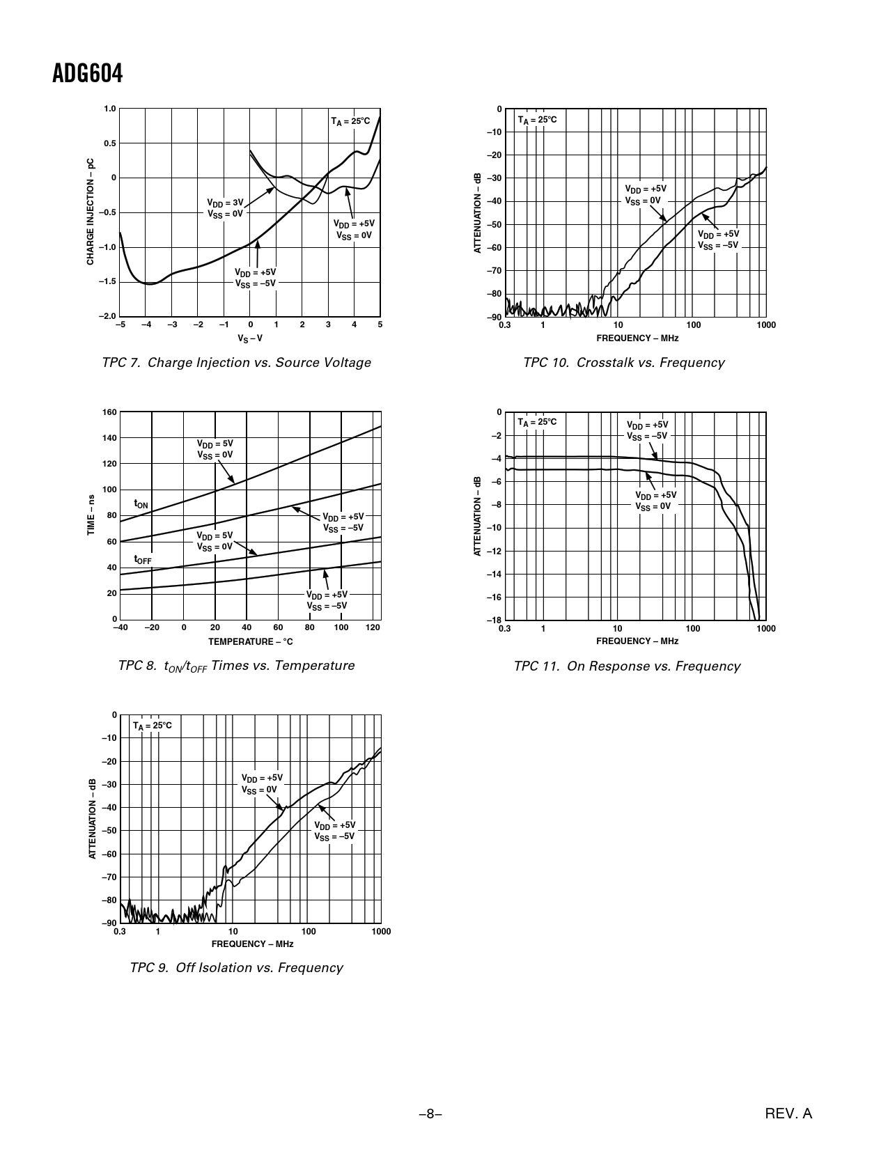 TPC 9. Off Isolation vs. Frequency –8– REV. A