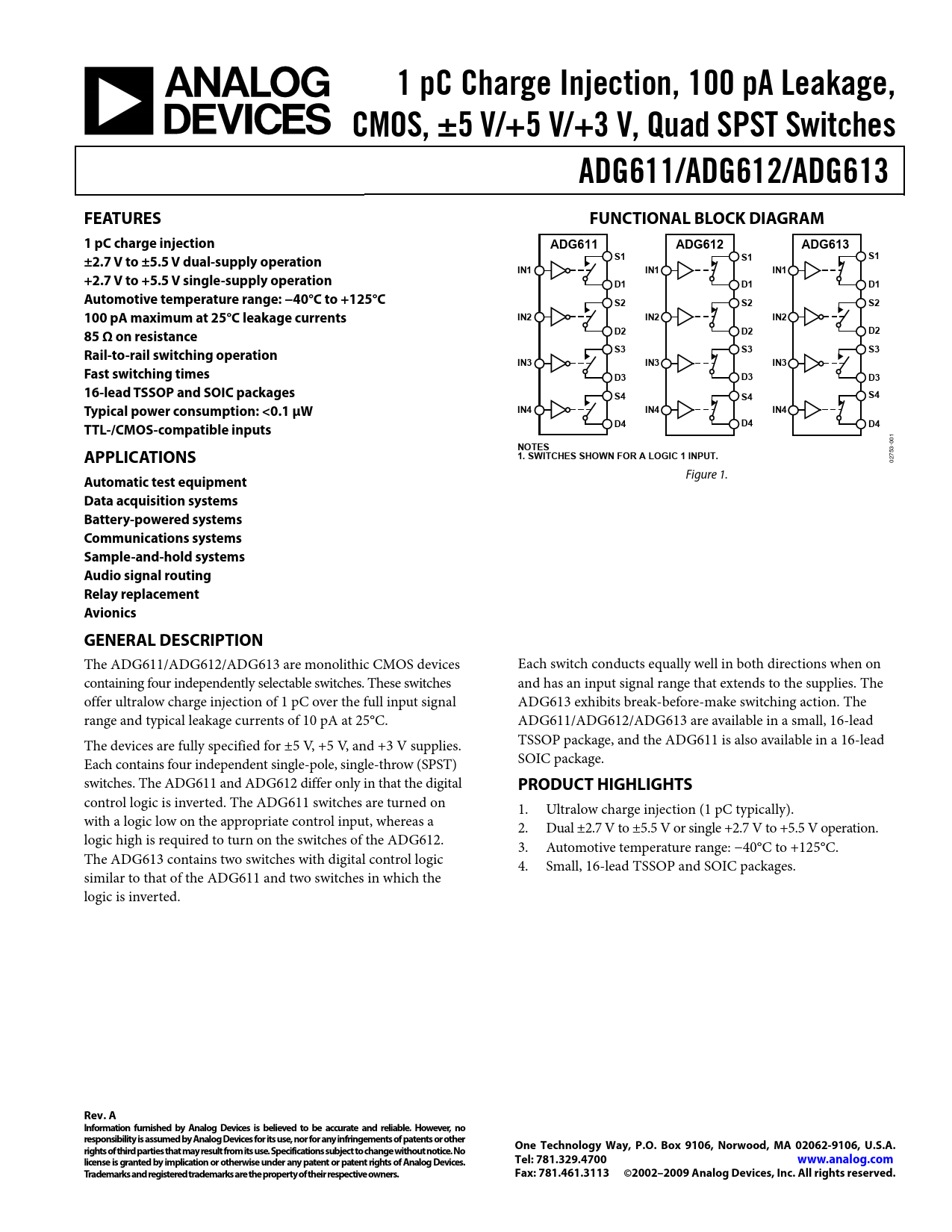 Datasheet ADG611, ADG612, ADG613 (Analog Devices)