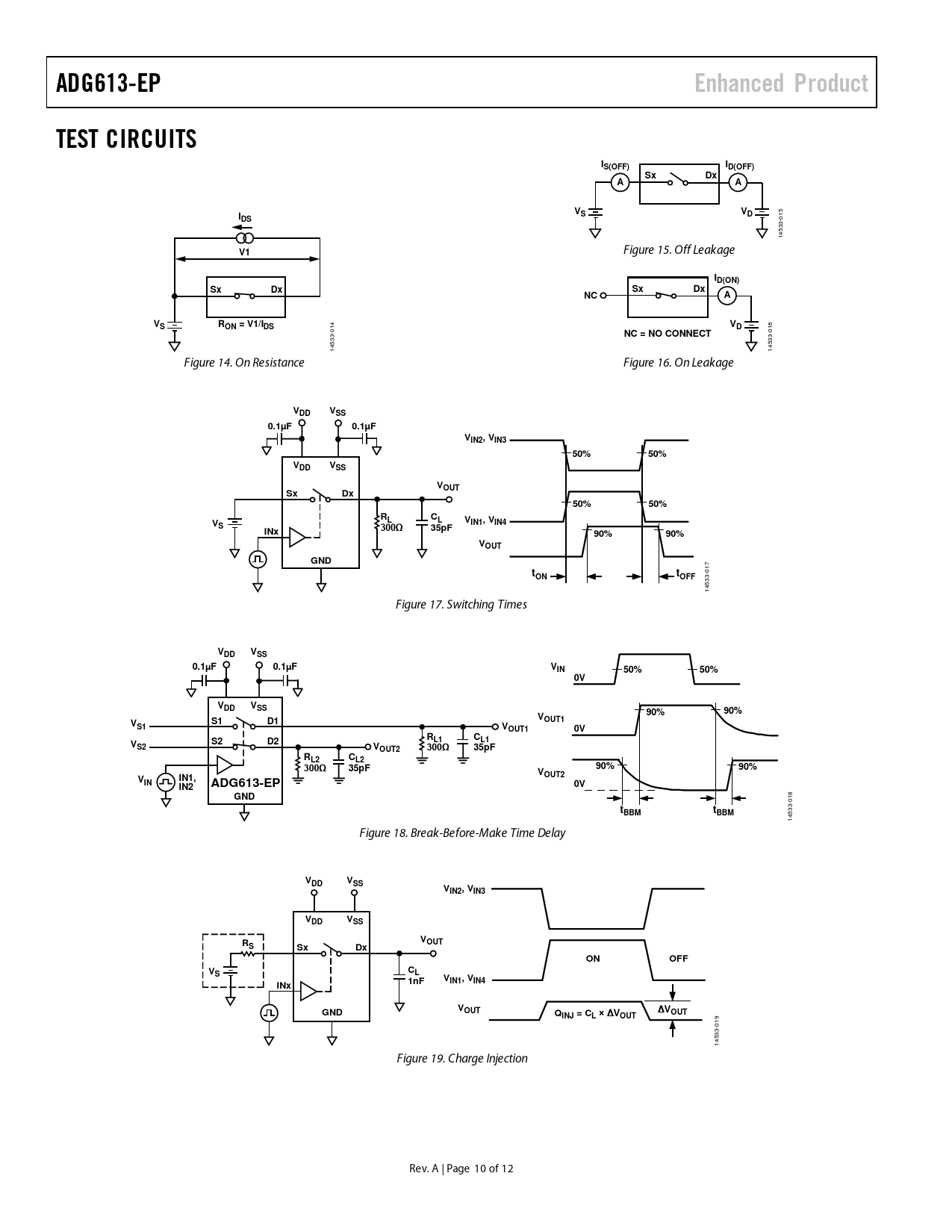 | Seiten / Seite | 12 / 10 — ADG613-EP. Enhanced Product. TEST CIRCUITS. IS(OFF). ID(OFF). ID(ON). RON … |