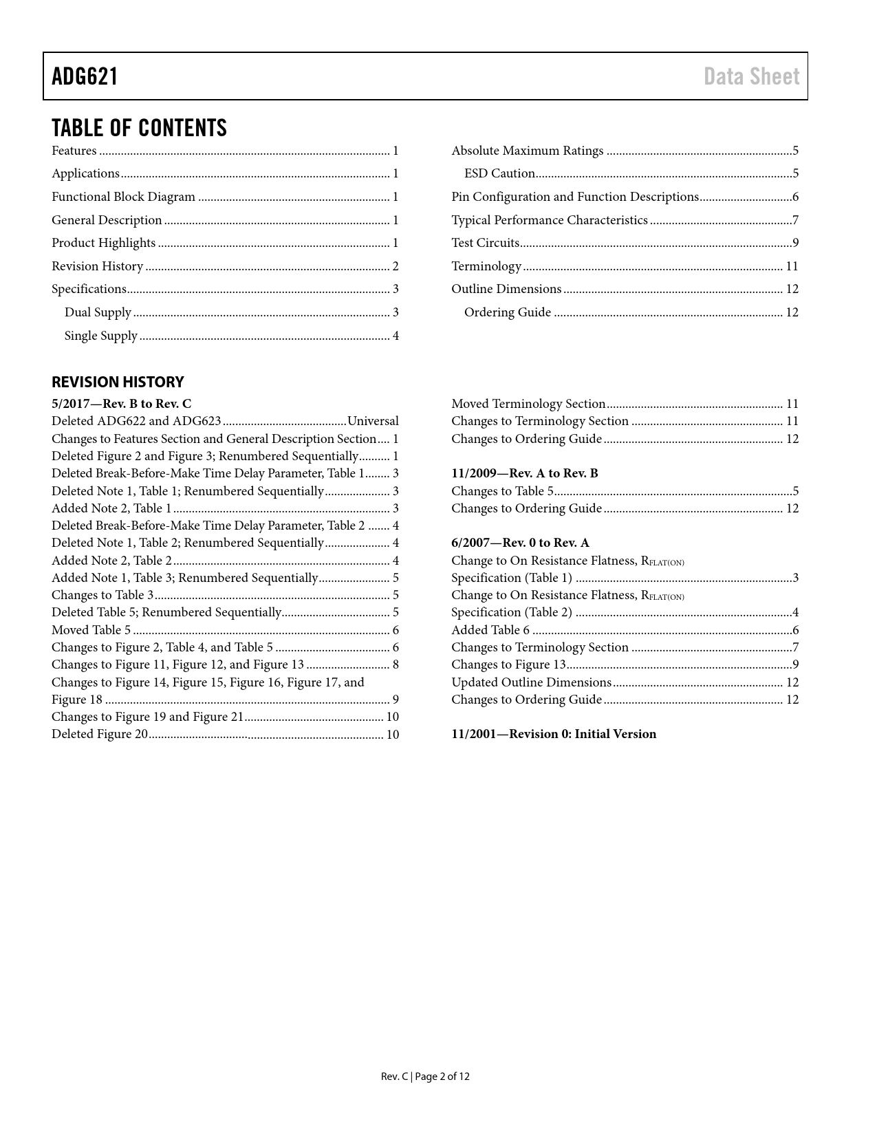 Seiten / Seite12 / 2 — ADG621. Data Sheet. TABLE OF CONTENTS. REVISION HISTORY 5/2017—Rev. B to …