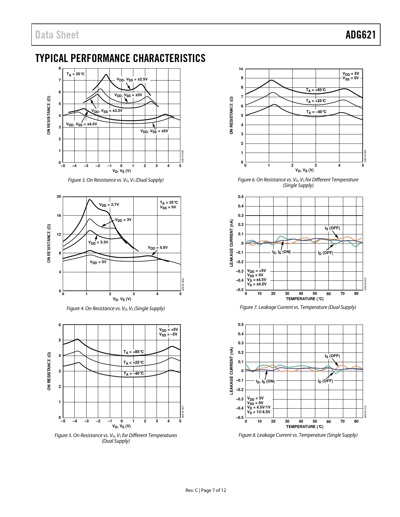Data Sheet. ADG621. TYPICAL PERFORMANCE CHARACTERISTICS. A = 25°C. DD = 5V. VDD, VSS = ±2.5V. SS = 0V. A = +85. VDD, VSS = ±3V. A = +25