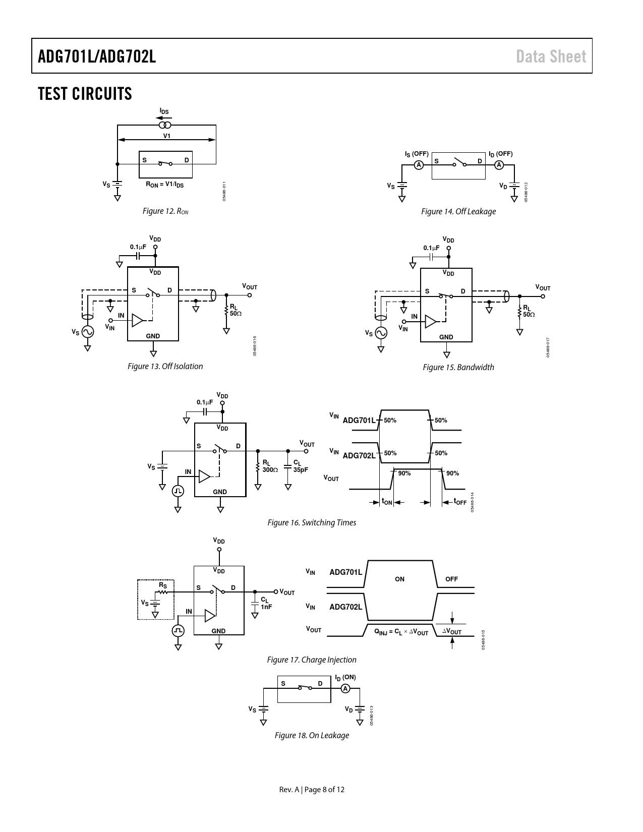 | Seiten / Seite | 12 / 8 — ADG701L/ADG702L. Data Sheet. TEST CIRCUITS. IDS. IS (OFF). ID (OFF). RON … |