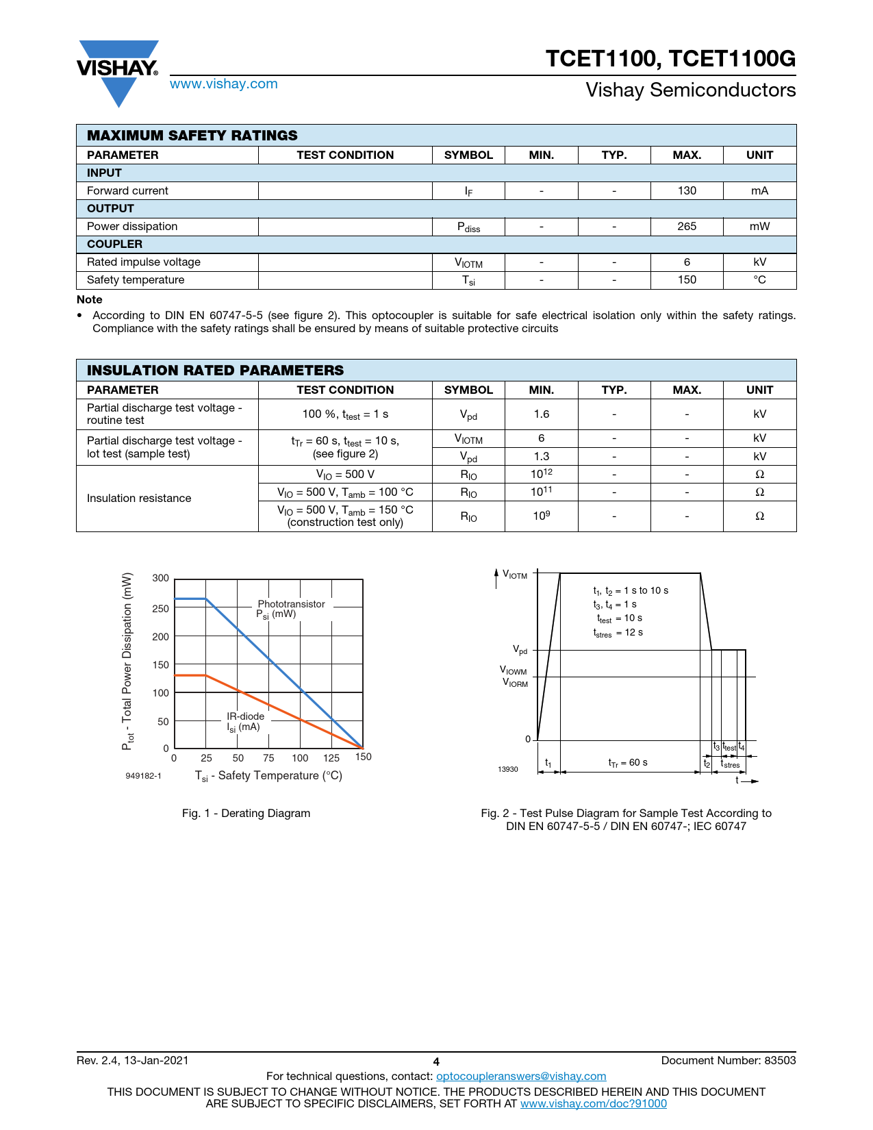 TCET1100, TCET1100G. MAXIMUM SAFETY RATINGS PARAMETER. TEST CONDITION. SYMBOL. MIN. TYP. MAX. UNIT. INPUT. OUTPUT. COUPLER. Note